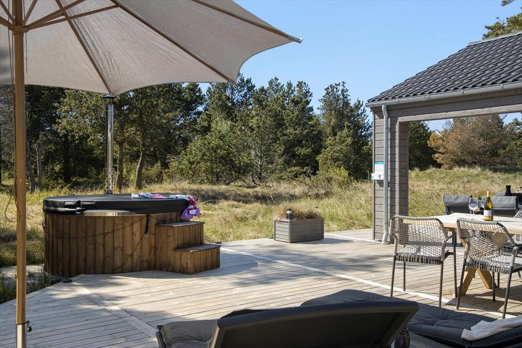 Når du holder ferie i dette skønne sommerhus ved Kjul Strand, tager det få minutter at gå til Vesterhavet, og på cirka samme tid kan du køre i bil til midten af Hirtshals. Men der er nu også god grund til at blive hjemme i huset, der lokker med et godt aktivitetsrum og dejlige wellnessfaciliteter både inde og ude.