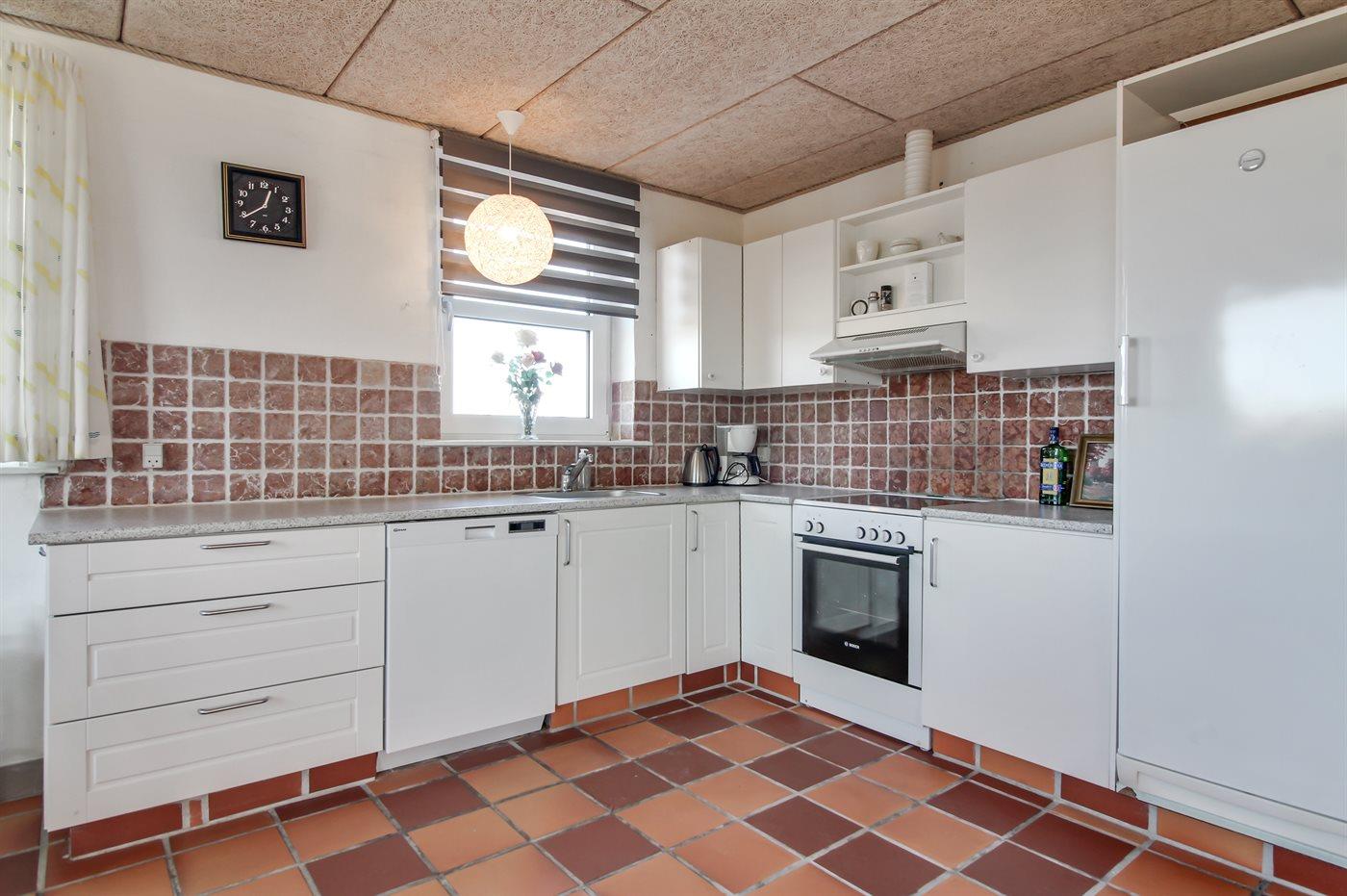 Køkkenet er udstyret med 1 køleskab. Der er 4 keramiske kogeplader, varmluftovn samt opvaskemaskine.