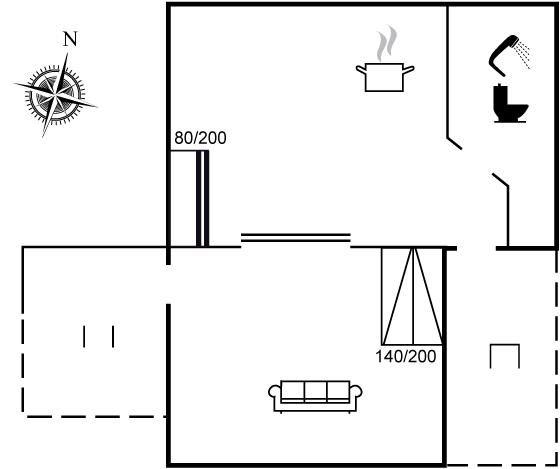 Sovepladserne fordeler sig på:2 sovepladser i dobbeltseng. 2 sovepladser i køjeseng. Derudover er der 1 stk. barneseng.