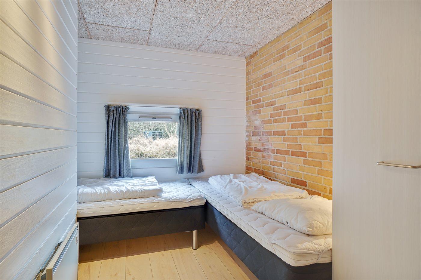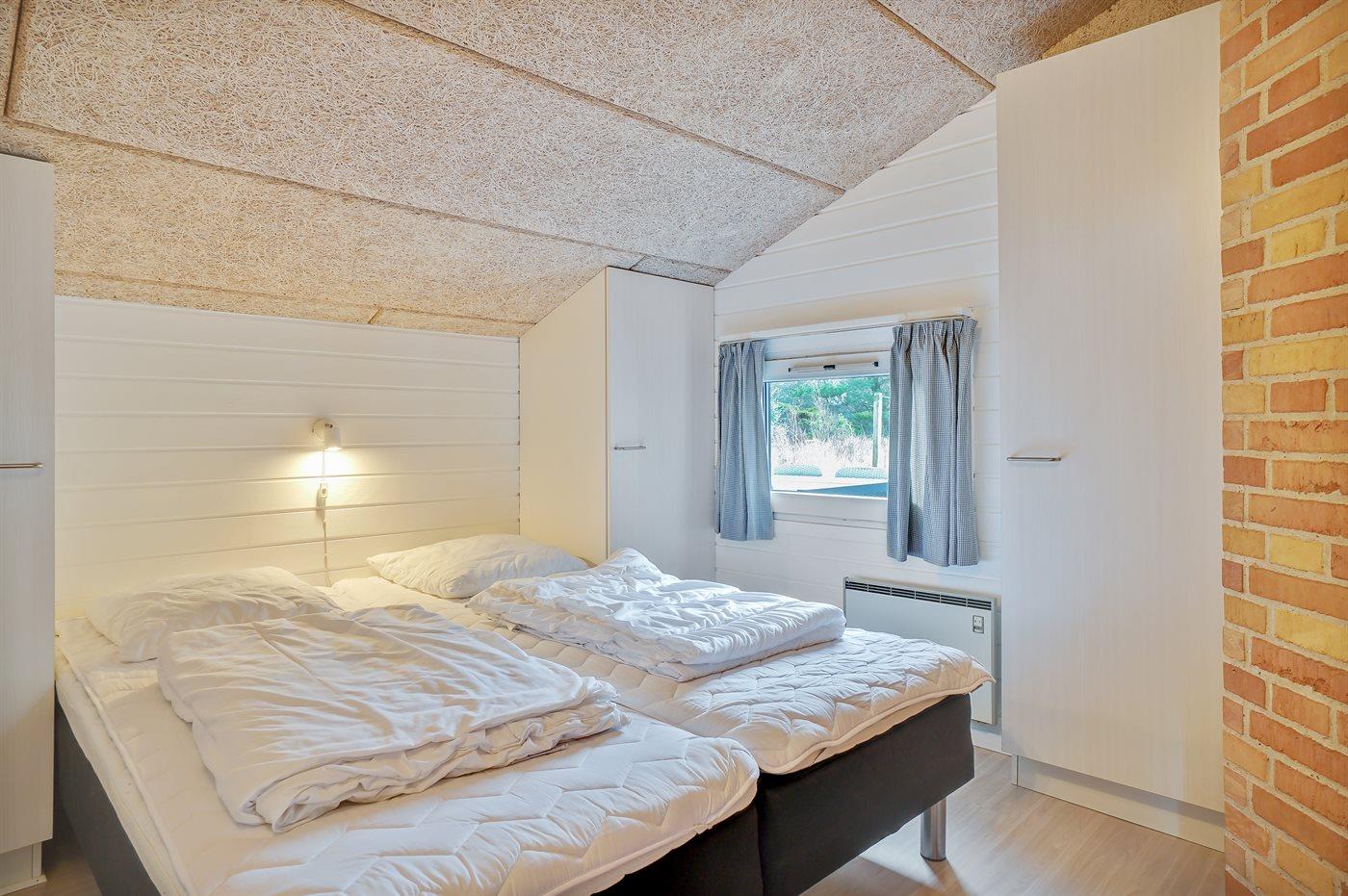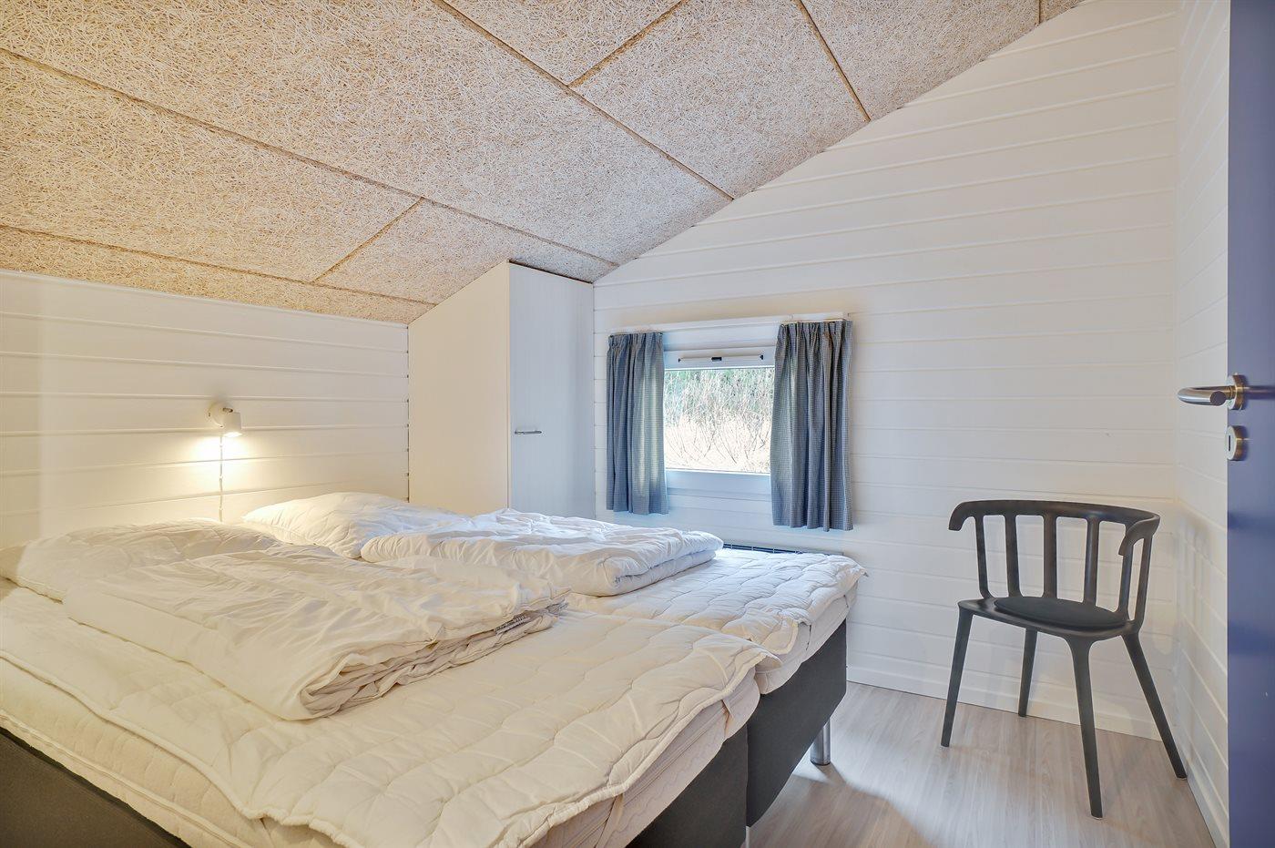 Der er i alt 6 soveværelser. Sovepladserne fordeler sig på: 8 sovepladser i dobbeltsenge. 4 sovepladser i enkeltsenge. 2 sovepladser på madrasser. 2 af disse sovepladser befinder sig på husets hems. Derudover er der 1 stk. barneseng.