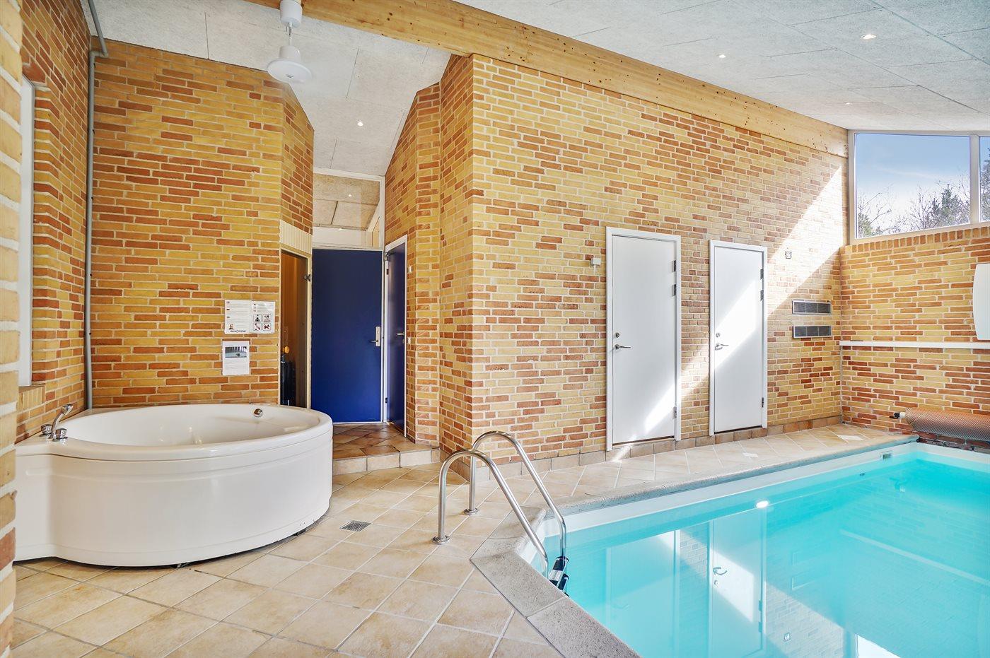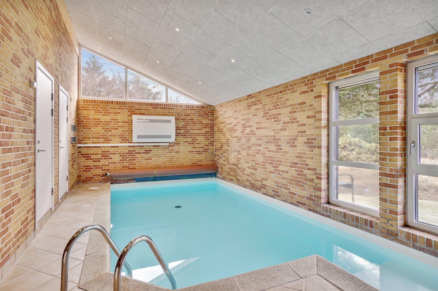 I den indendørs swimmingpool er der mulighed for leg og hyggeligt samvær. Swimmingpoolen måler op til 3,5 m i bredden, 5 m i længden og den er op til 1,5 m dyb. Vandet er mellem 24 og 28° C varmt. Til de små er der desuden børnepool.