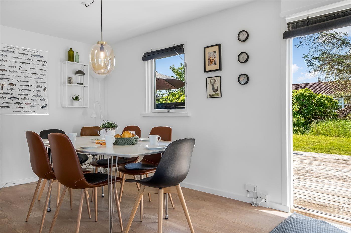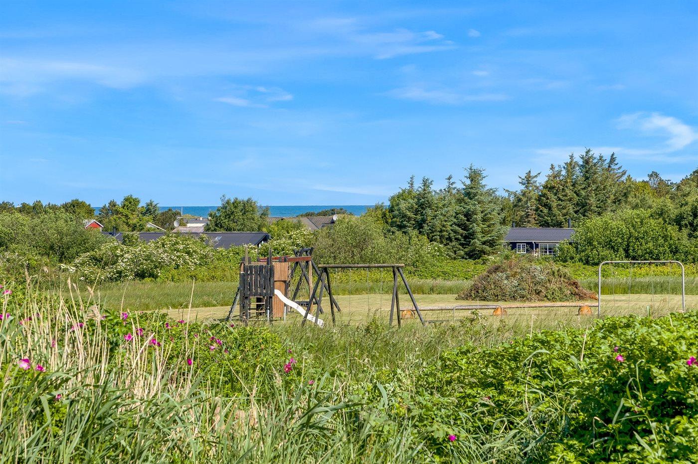 Tæt på huset ligger der en fælles legeplads med bl.a. gynge, legetårn og rutsjebane. Huset ligger i gåafstand til den dejlige badestrand og i flot natur, hvor der er gode muligheder for gåture med eller uden hund.