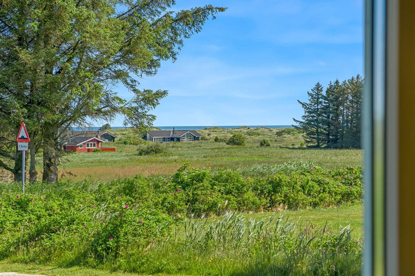 Hyggeligt sommerhus med havudsigt, tæt på strand og legeplads i naturskønne Kjul ved Vesterhavet.