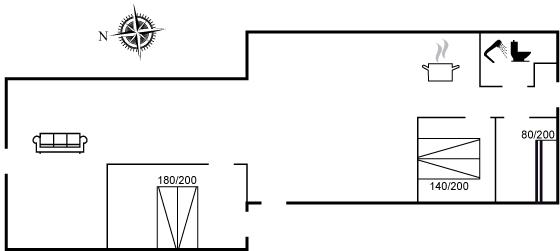 Der er i alt 3 soveværelser. Sovepladserne fordeler sig på: 4 sovepladser i dobbeltsenge. 2 sovepladser i køjeseng.