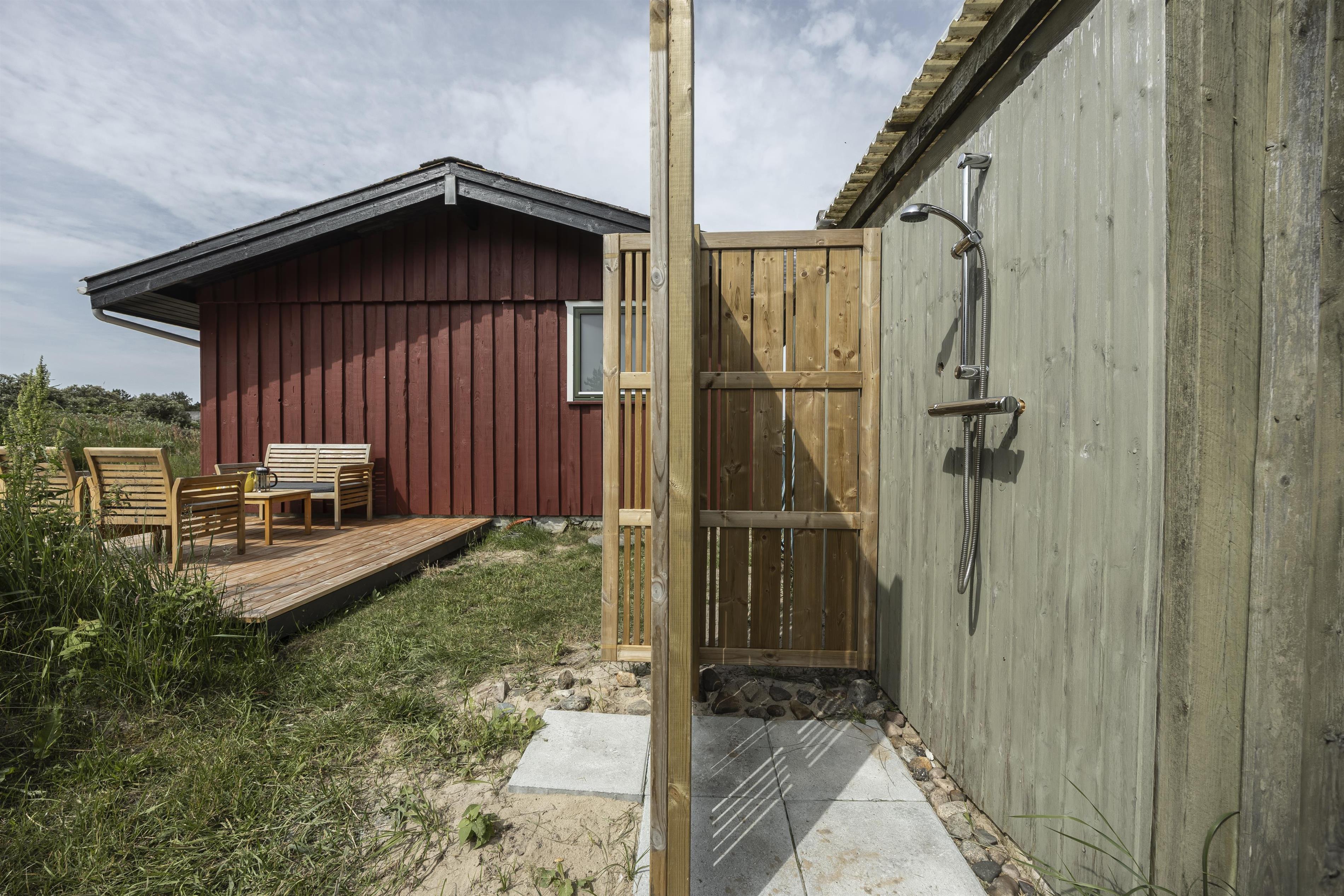 De nye terrasser, der snart står klar, vil byde på endnu flere muligheder for udendørs hygge og afslapning. Med både shelter og udebruser får I her et ekstra frirum til at nyde de naturskønne omgivelser og opleve sommerhuslivet helt tæt på naturen.