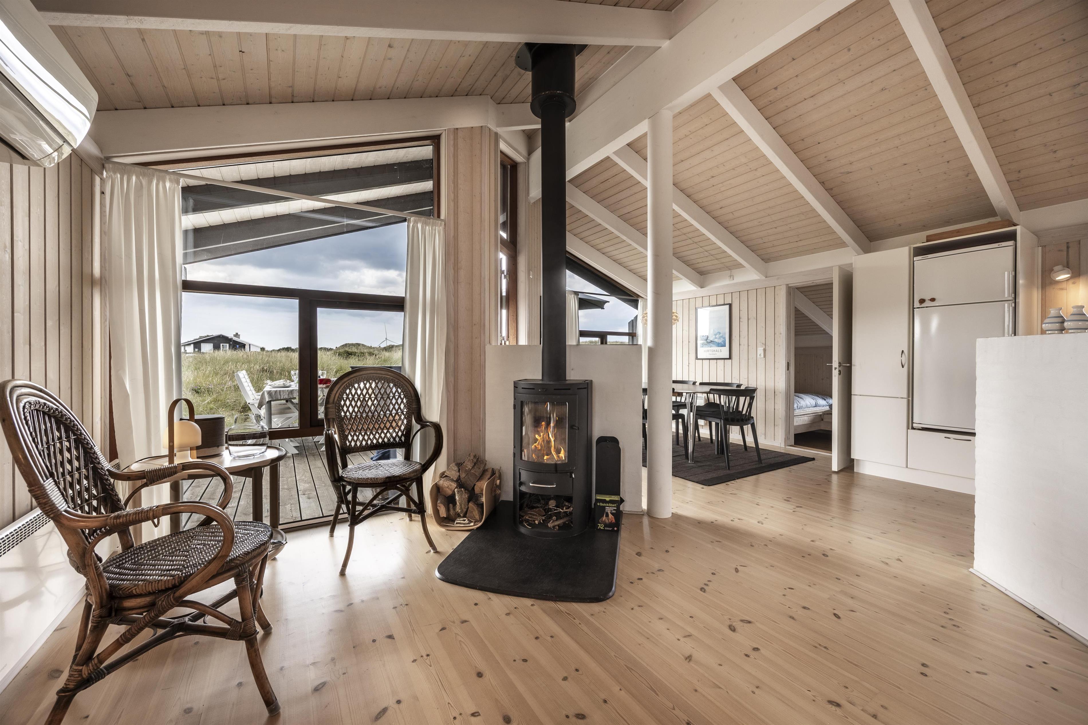 Velkommen til et indbydende og velholdt feriehus ved Vestkysten, ideelt til familien eller vennegruppen, der søger ro og kvalitetstid tæt på naturen. Feriehuset rummer op til 8 personer og er indrettet med fokus på hygge og funktionalitet. I stuen skaber brændeovnen en varm og afslappende atmosfære, perfekt til kølige aftener. Det åbne opholdsrum har gode siddepladser og er forbundet med køkkenet, som er fuldt udstyret med alt, hvad I behøver for en bekvem ferie. Store vinduespartier bringer det smukke lys fra Nordjylland indenfor og understreger følelsen af at være tæt på naturen – uanset årstiden.