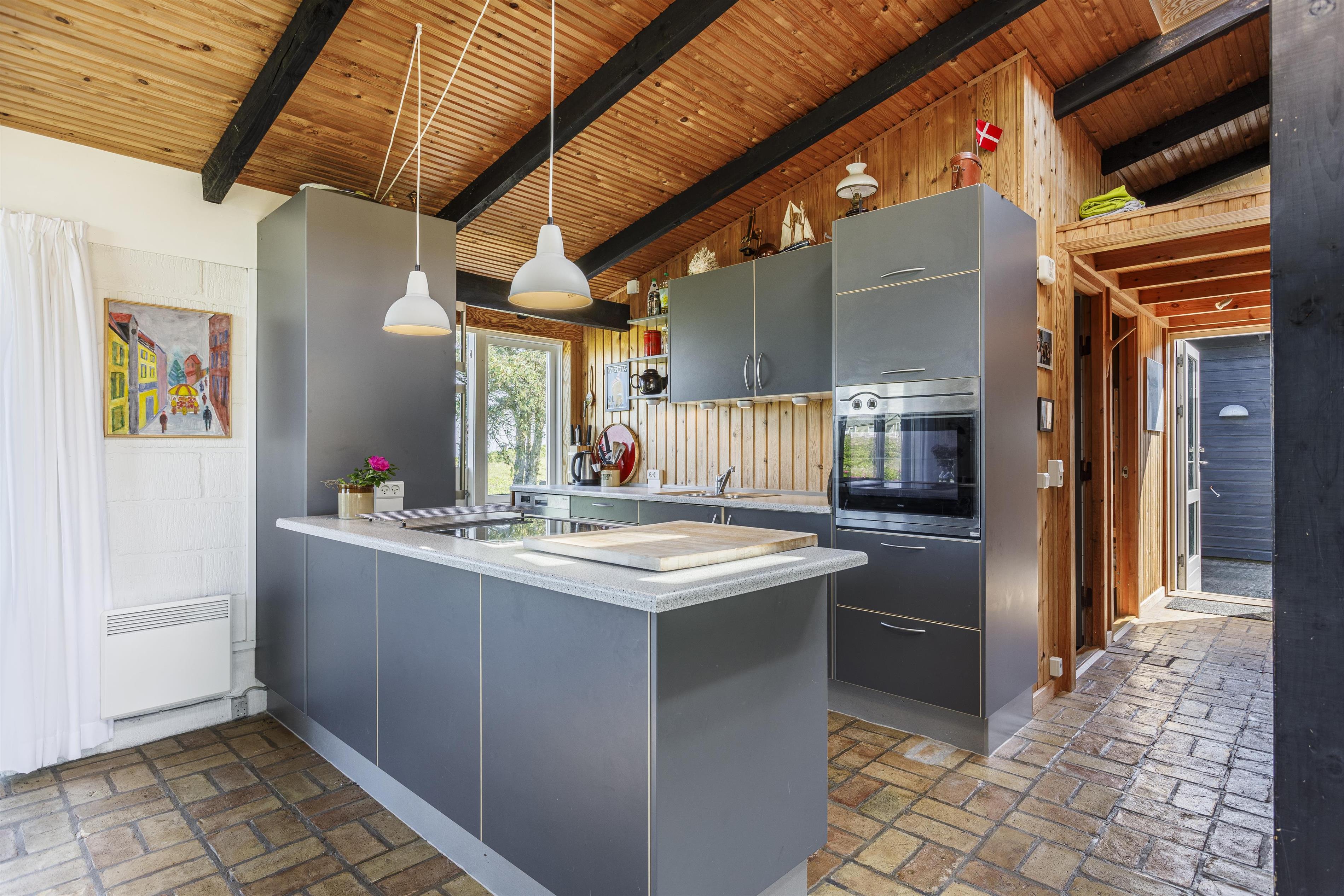 Dette charmerende feriehus er indrettet med fokus på hygge og funktionalitet. Huset rummer tre praktiske soverum, et badeværelse og et opholdsrum med åbent køkken. De store vinduespartier trækker lyset ind, og fra flere rum kan I nyde udsigten over havet. Brændeovnen i stuen skaber en varm atmosfære på kølige aftener, mens det rummelige køkken og spiseområdet indbyder til fælles madlavning og samvær. I opholdsrummet er der god plads til alle. Tag for eksempel et spil med familien, mens I gennemgår dagens oplevelser. Her finder I alt, hvad I har brug for til en vellykket ferie. Desuden tilføjer annekset ekstra fleksibilitet med mulighed for yderligere opredning – perfekt til større familier.