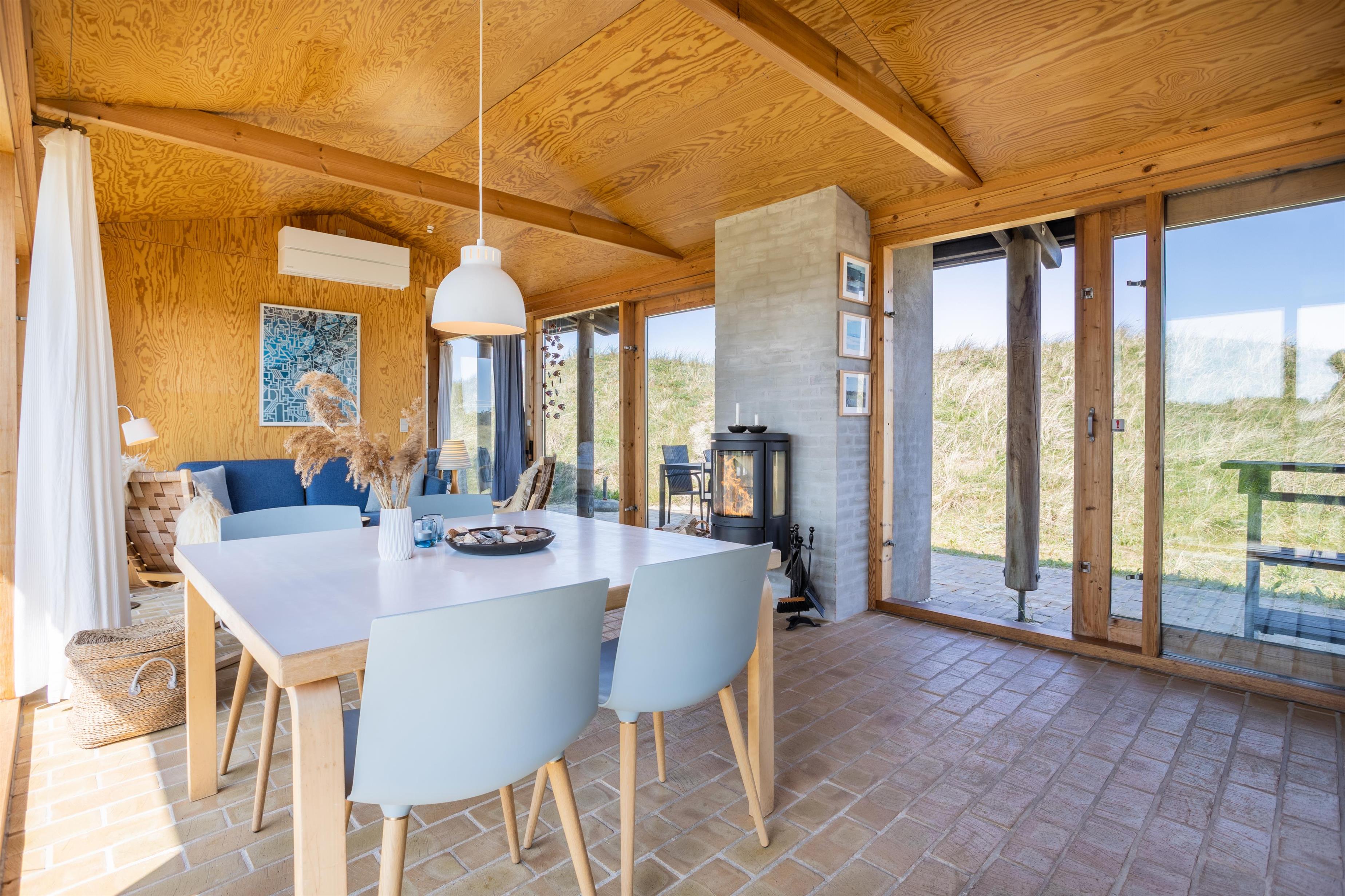 Omkring feriehuset finder I flere skønne terrasser, der gør det muligt at nyde solen og havets brusen hele dagen. Med et bord-bænkesæt i klitterne kan I nyde frokosten med udsigt over havet. Huset er placeret på en ugeneret naturgrund, og blot en kort gåtur gennem klitterne fører dig direkte til stranden.