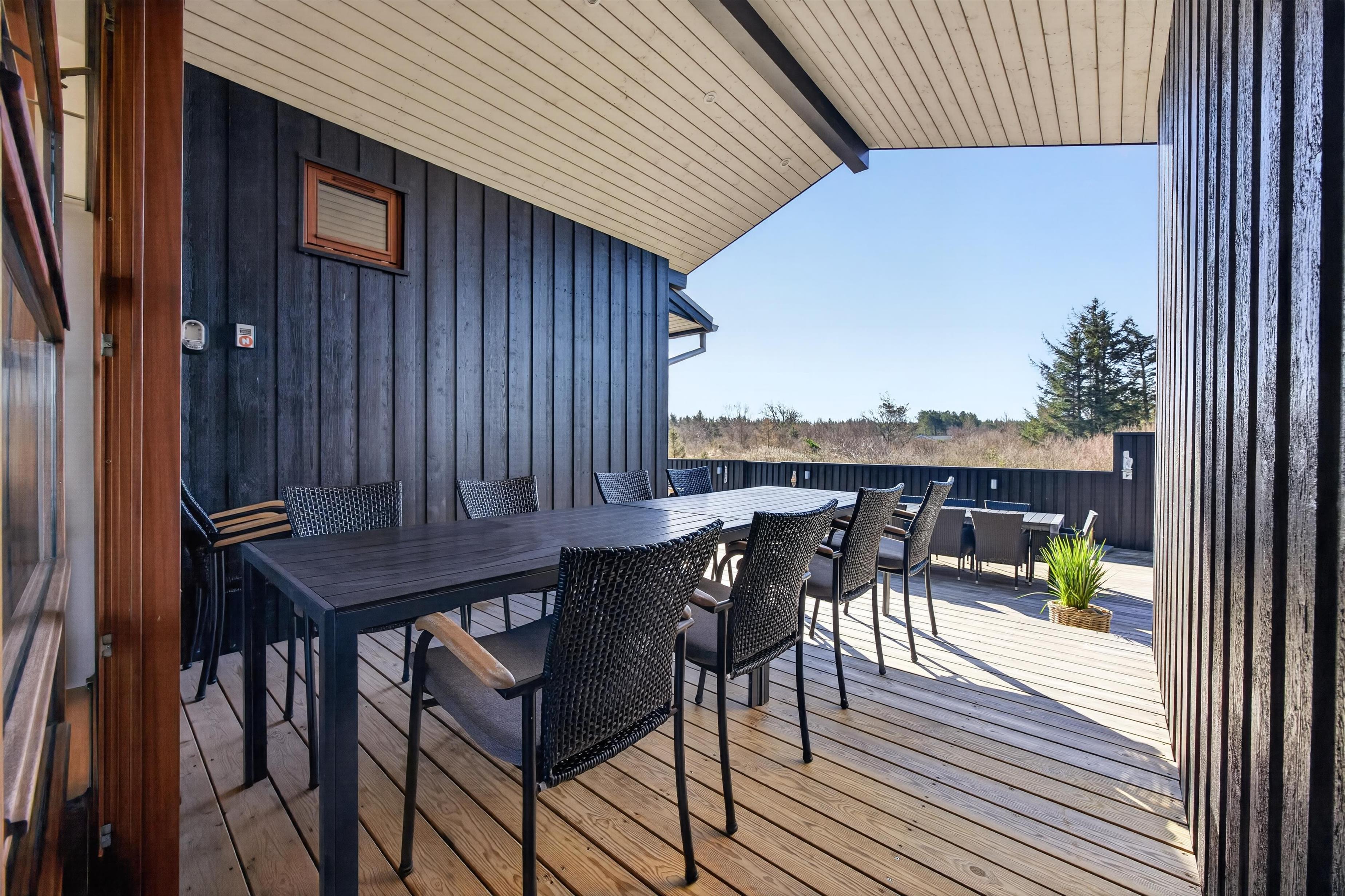 Udenfor venter flere dejlige terrasser, der giver jer mulighed for at nyde livet i det fri fra morgen til aften. Den store åbne terrasse er ideel til solbadning og hyggelige grillmiddage, mens den overdækkede terrasse giver læ og stemning, når aftenduggen falder.