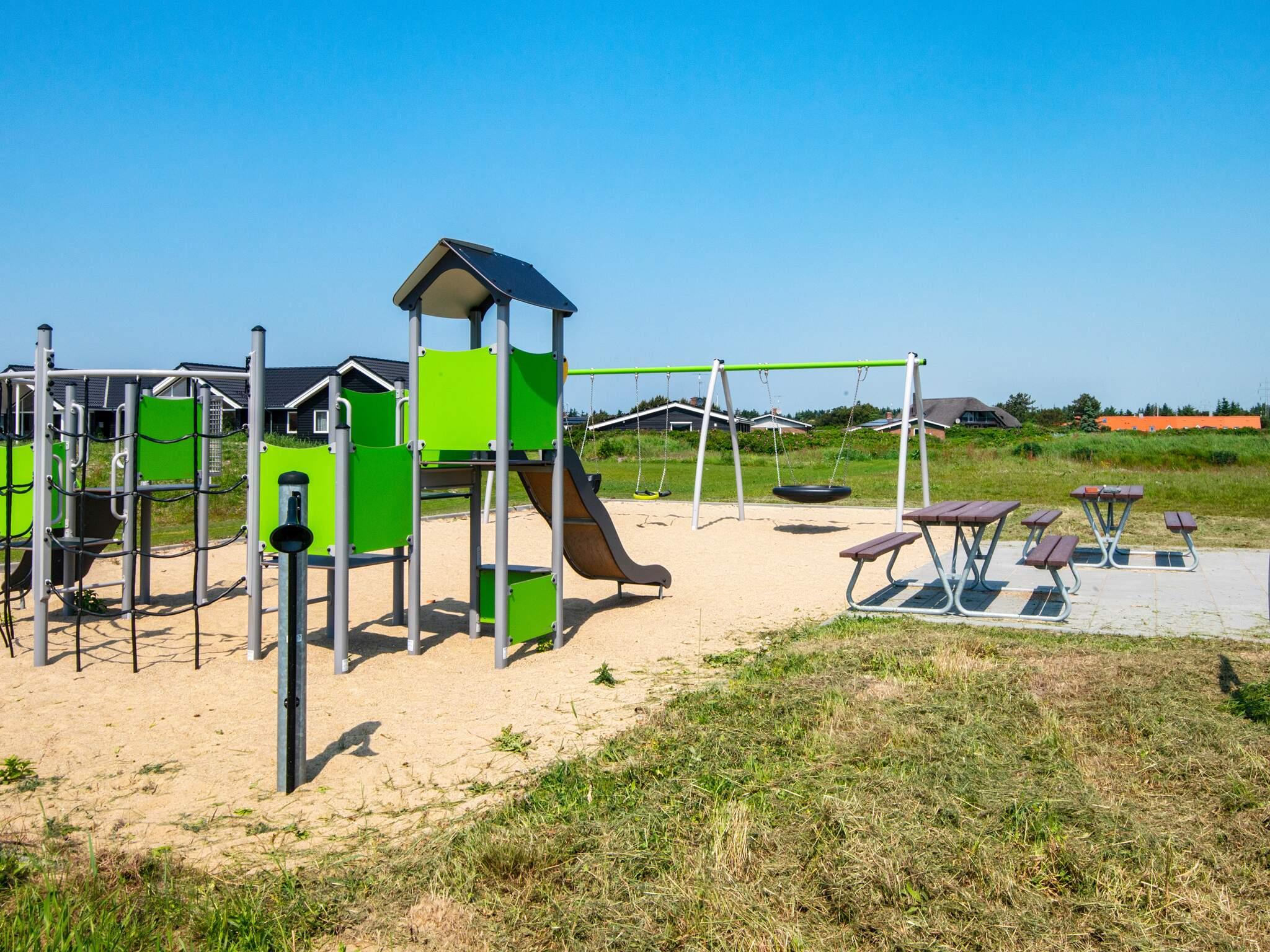 I haven kan børnene hygge sig med gynge og sandkasse samt en stor trampolin (benyttes på eget ansvar/forsikring). På den store terrasse kan I nyde solen og have hyggelige grillaftener.