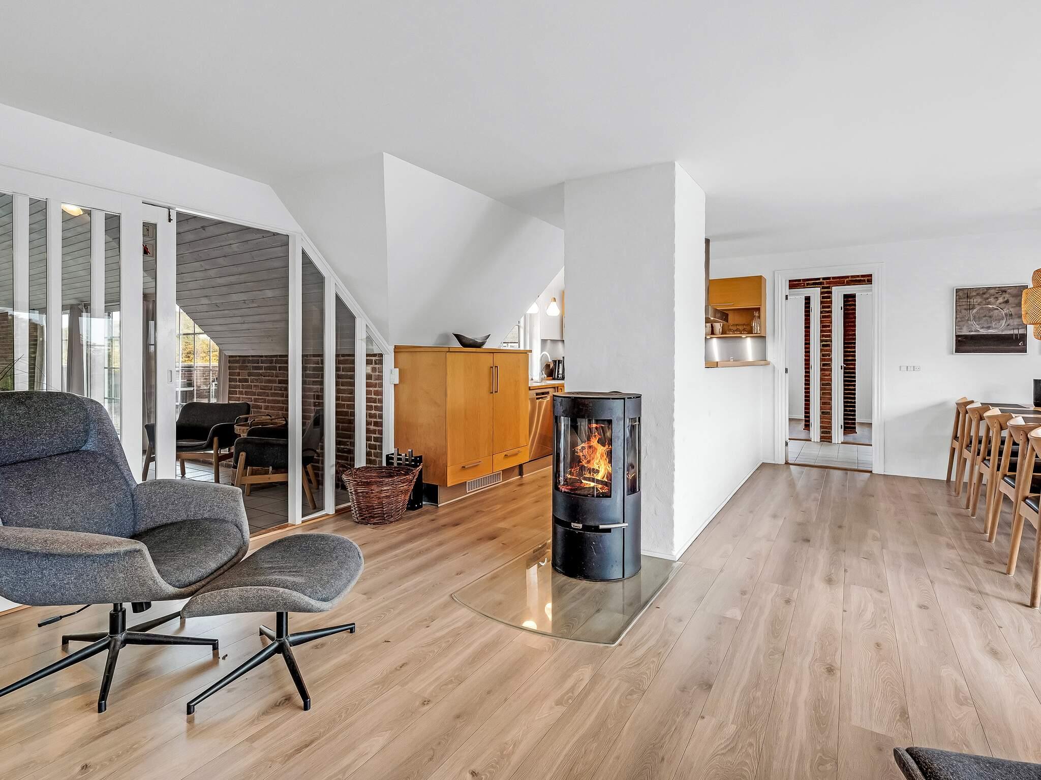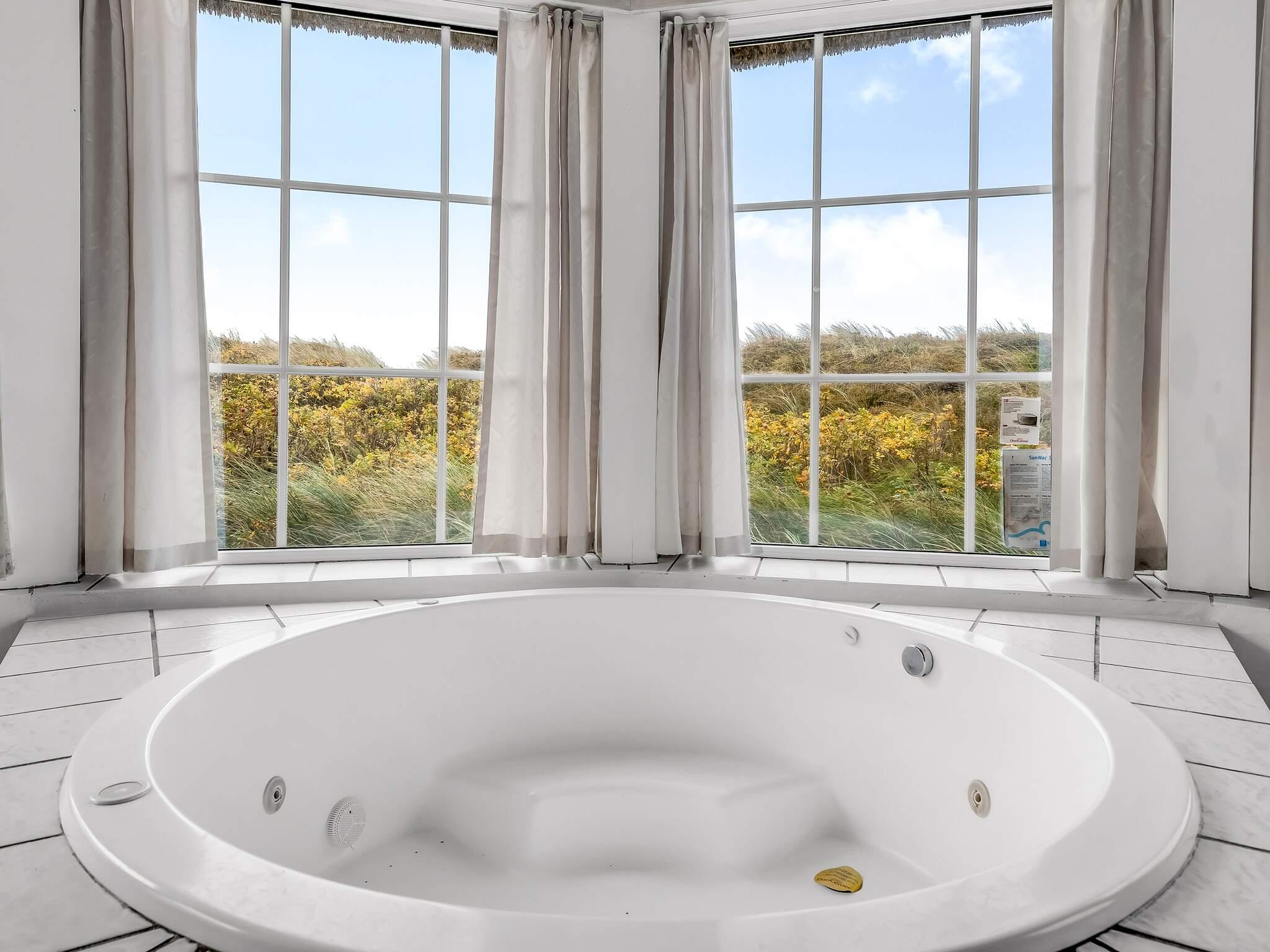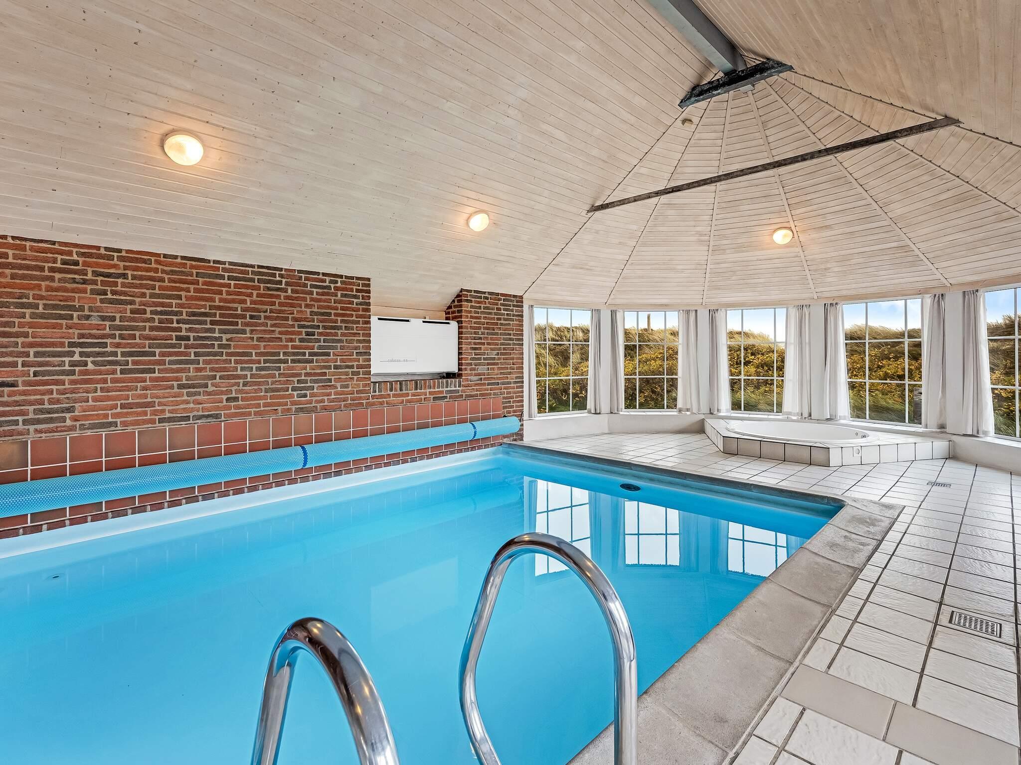Poolen er hele 20 m2. Tag en tur i spabadet ved vinduespartiet og nyd udsigten ud over klitlandskabet. Bagefter kan I nyde varmen i saunaen.