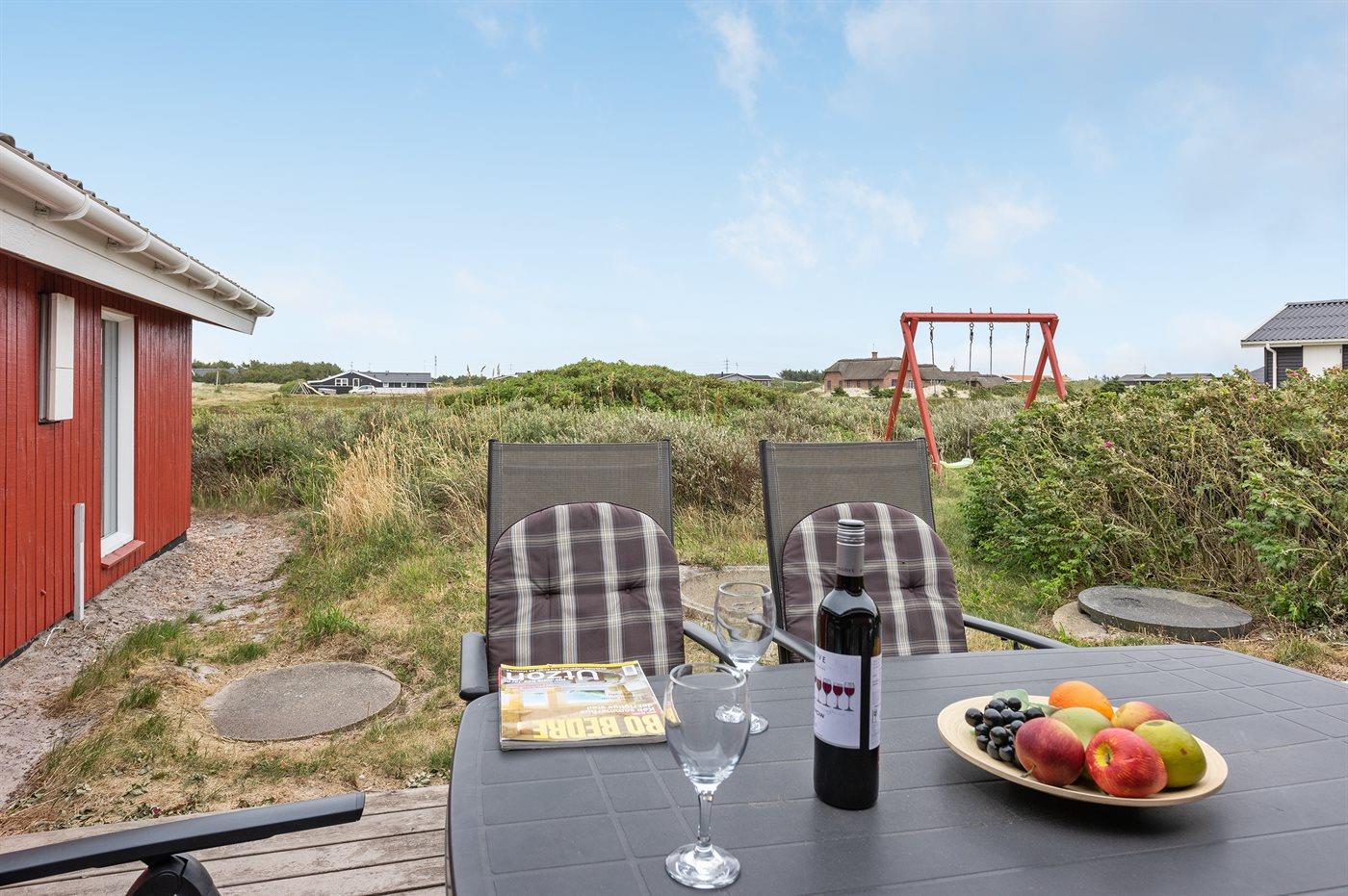 Ferieboligen er beliggende på en 1807 m² stor klitgrund. Der er 500 m til havet. Der er 1400 m til fjorden. Nærmeste forretning er beliggende i en afstand af 2500 m. Til ferieboligen hører 30 m² terrasseareal. Desuden er der 10 m² overdækket terrasse. Gynge. Sandkasse. Der er installeret stik til opladning af elbil. Parkering ved ferieboligen.