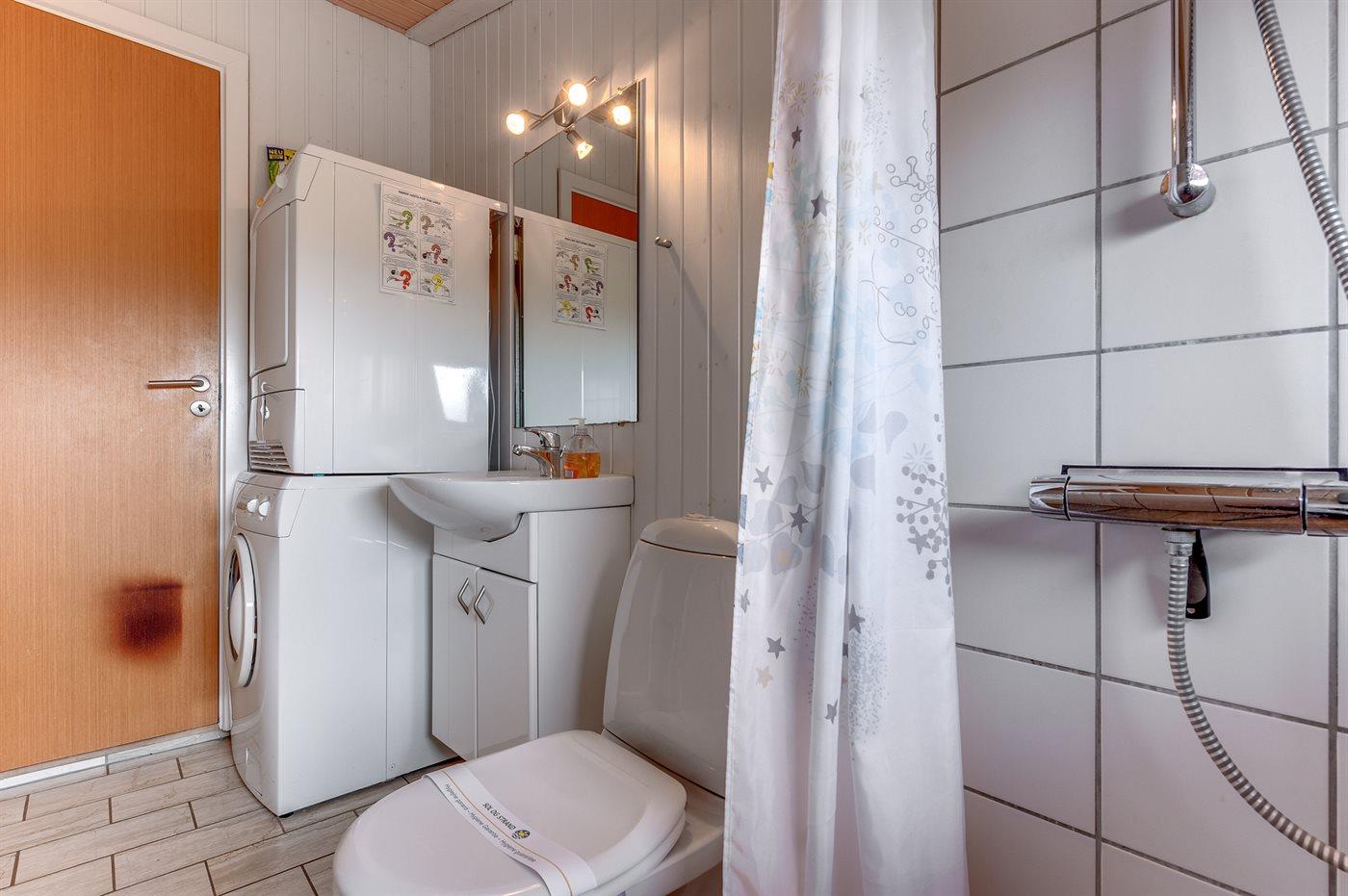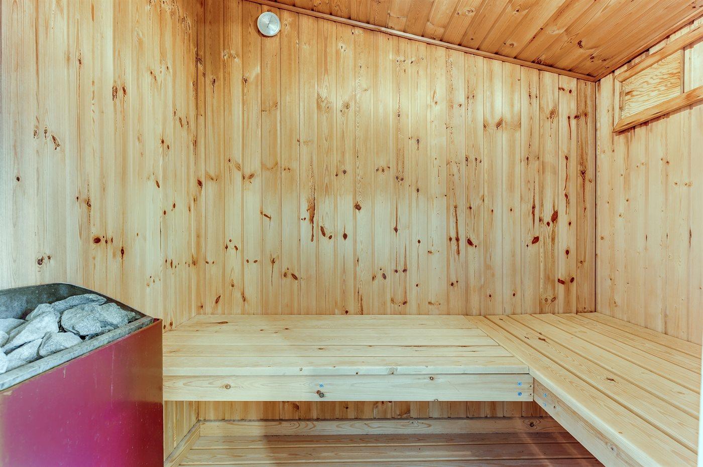 Der er 2 badeværelser med bruseniche og 2 toiletter. Der er gulvvarme på 2 badeværelser. I saunaen er der mulighed for afslapning.