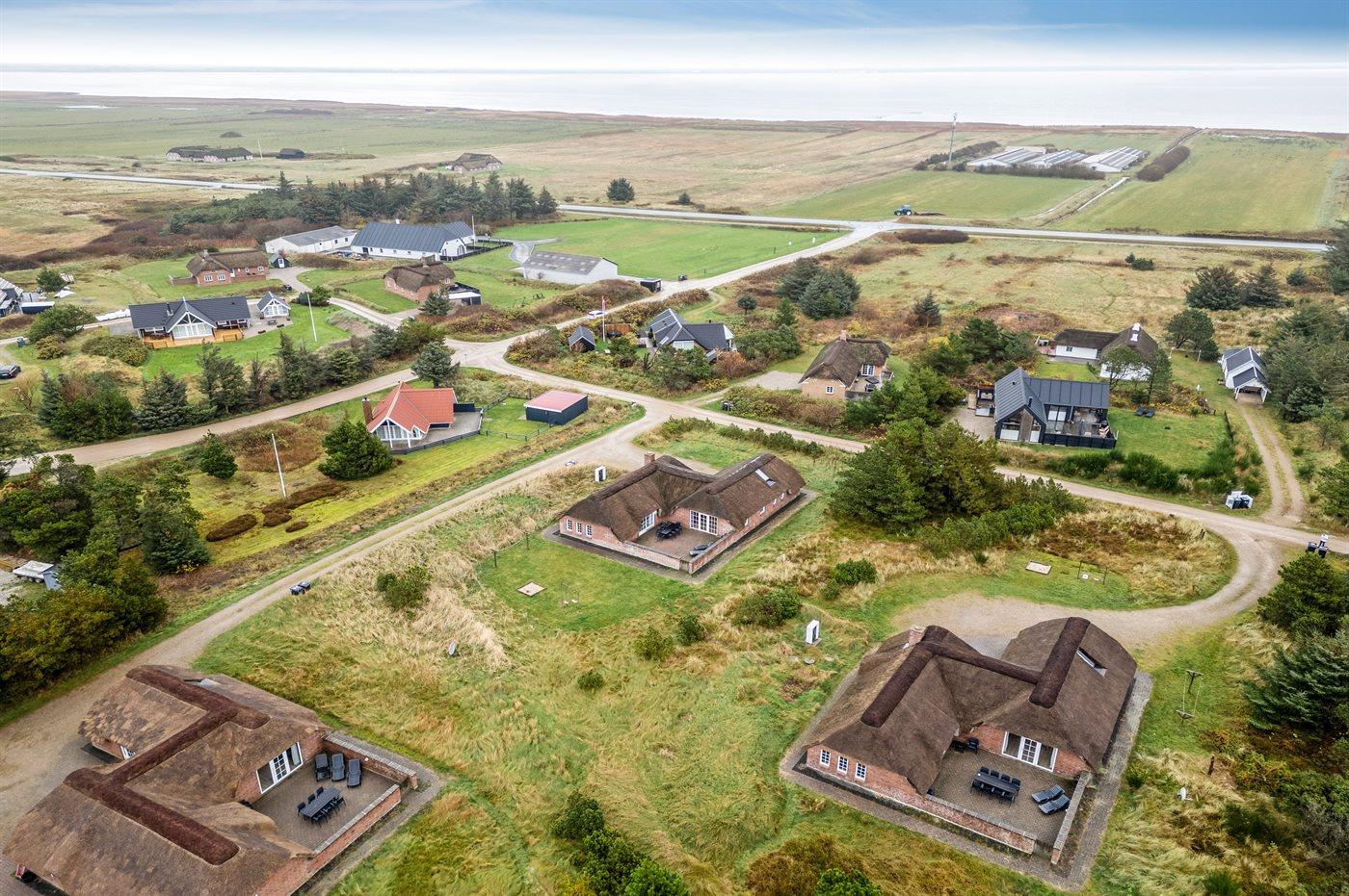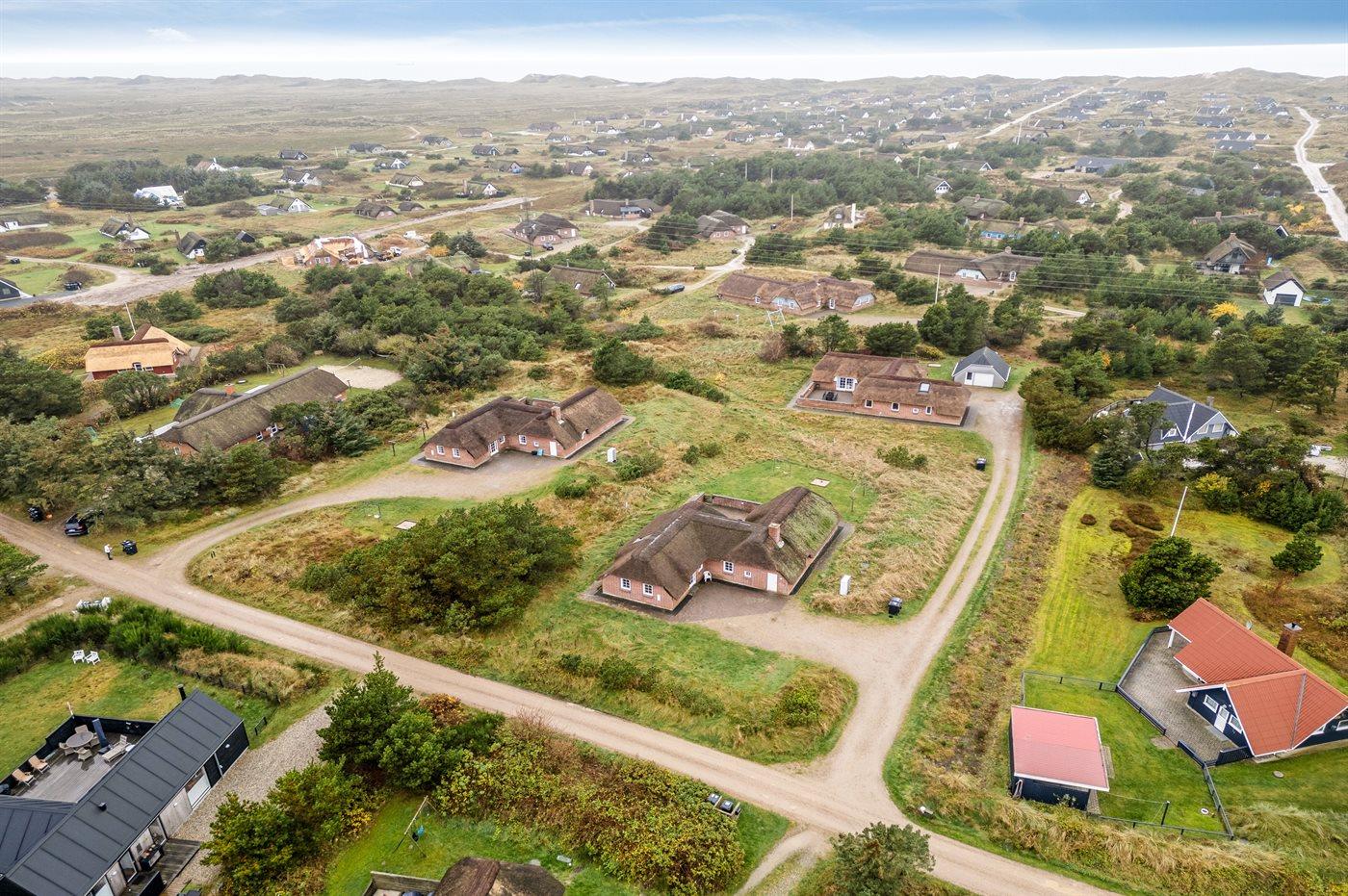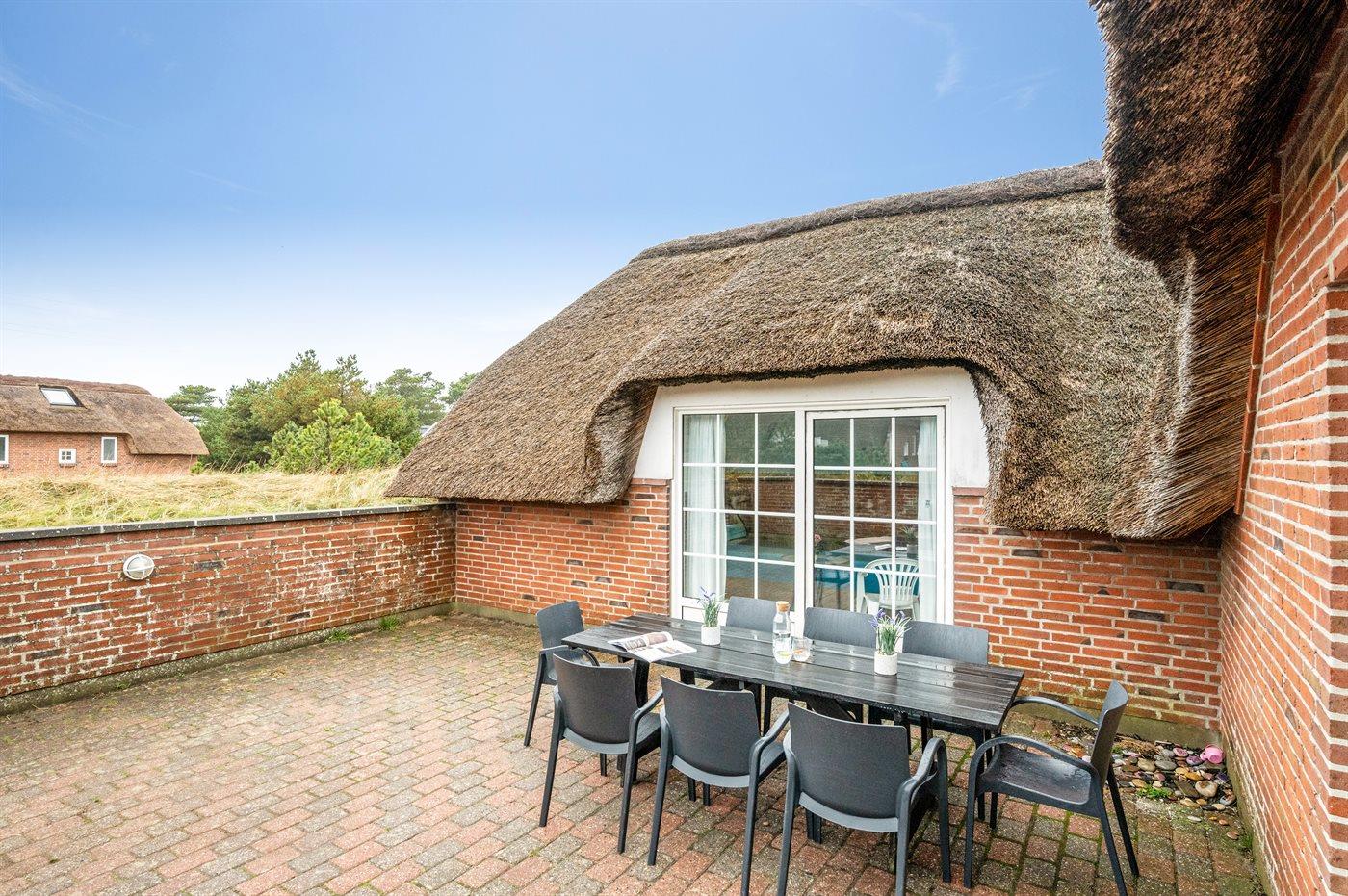 Dette charmerende sommerhus med stråtag ligger på en klitgrund nær Vesterhavet. Her kan man nyde afslappende stunder med familie og venner – både udendørs, på den helt lukkede og indhegnede terrasse, samt indendørs i de hyggelige omgivelser.
