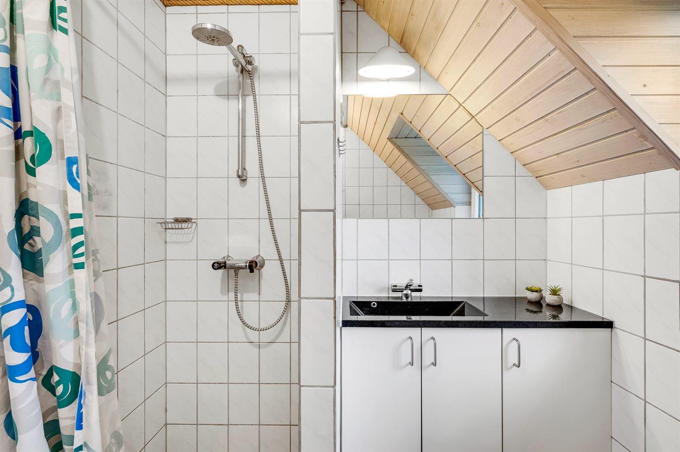 Der er 2 badeværelser med bruseniche og 2 toiletter. Der er gulvvarme på 2 badeværelser. I saunaen er der mulighed for afslapning.