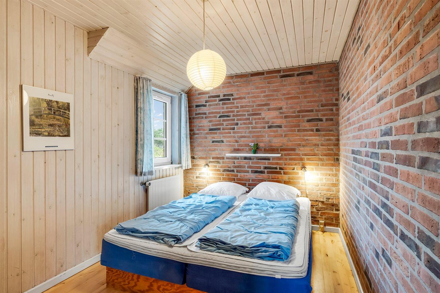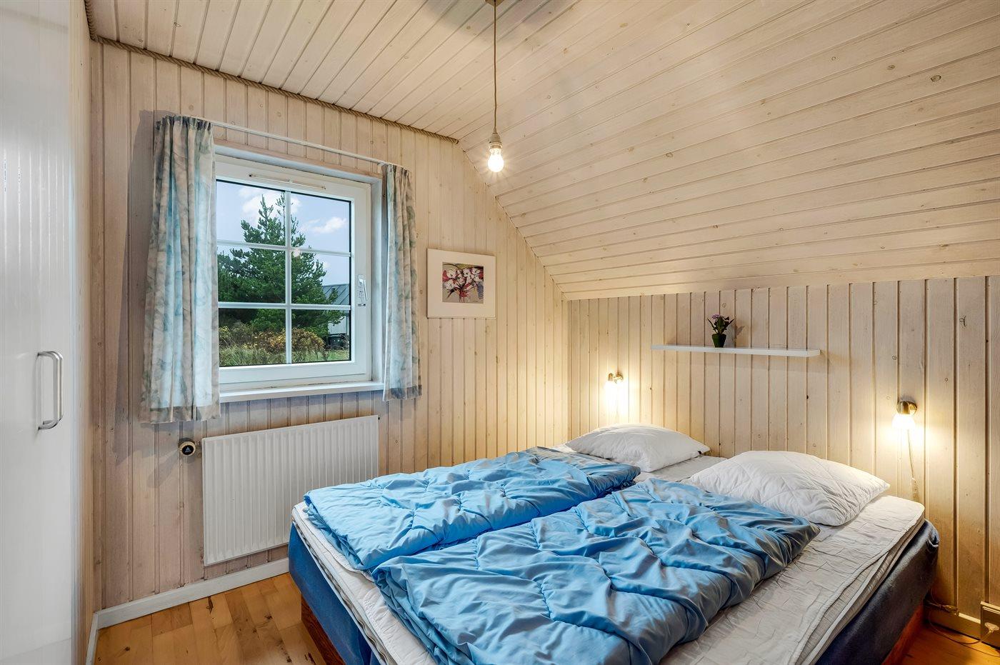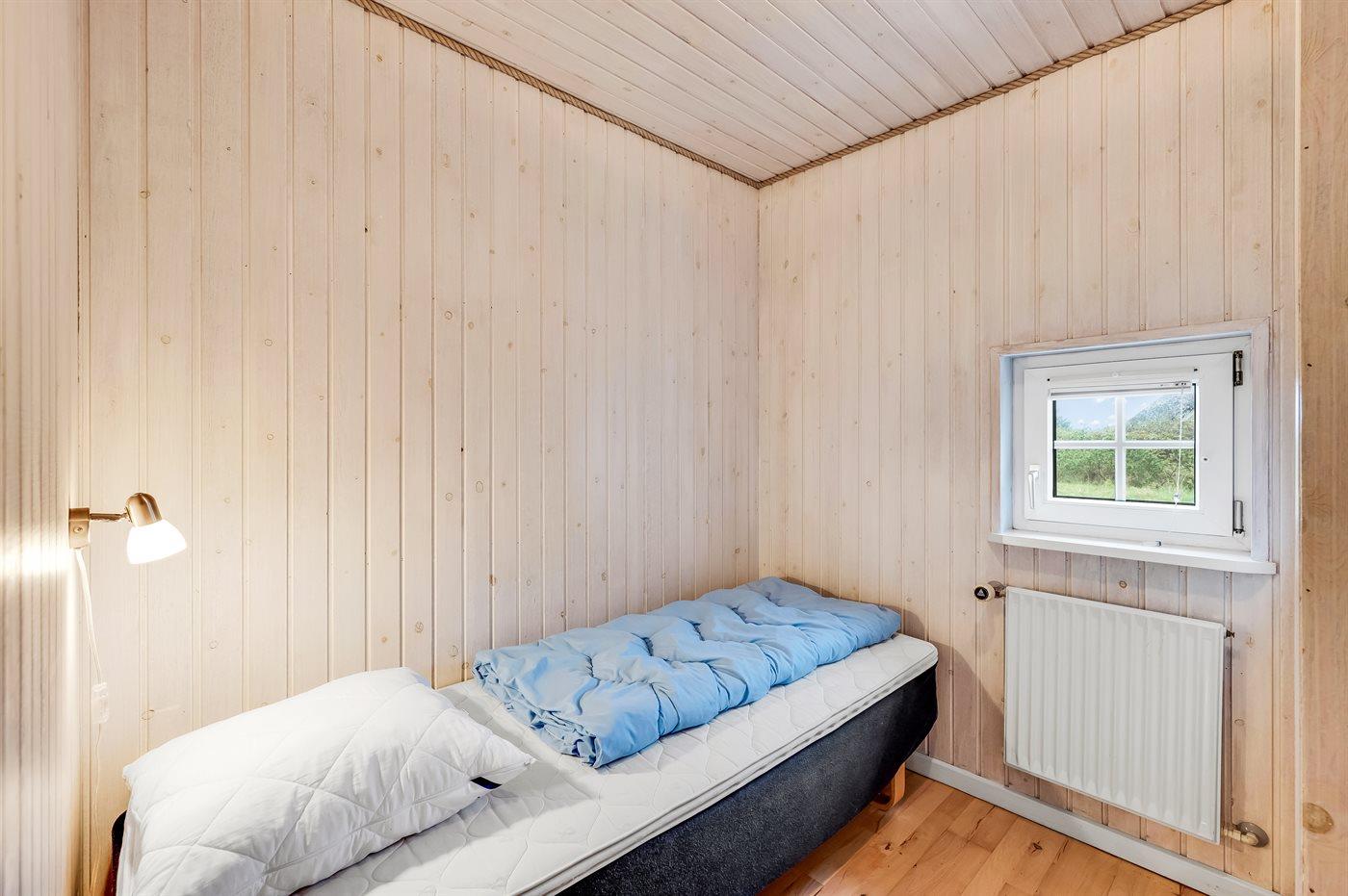 Der er i alt 5 soveværelser. Sovepladserne fordeler sig på: 8 sovepladser i dobbeltsenge. 1 soveplads i enkeltseng. 4 sovepladser på madrasser. 4 af disse sovepladser befinder sig på husets hems. Derudover er der 1 stk. barneseng.