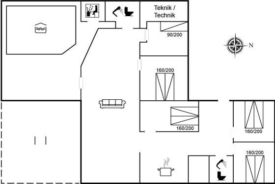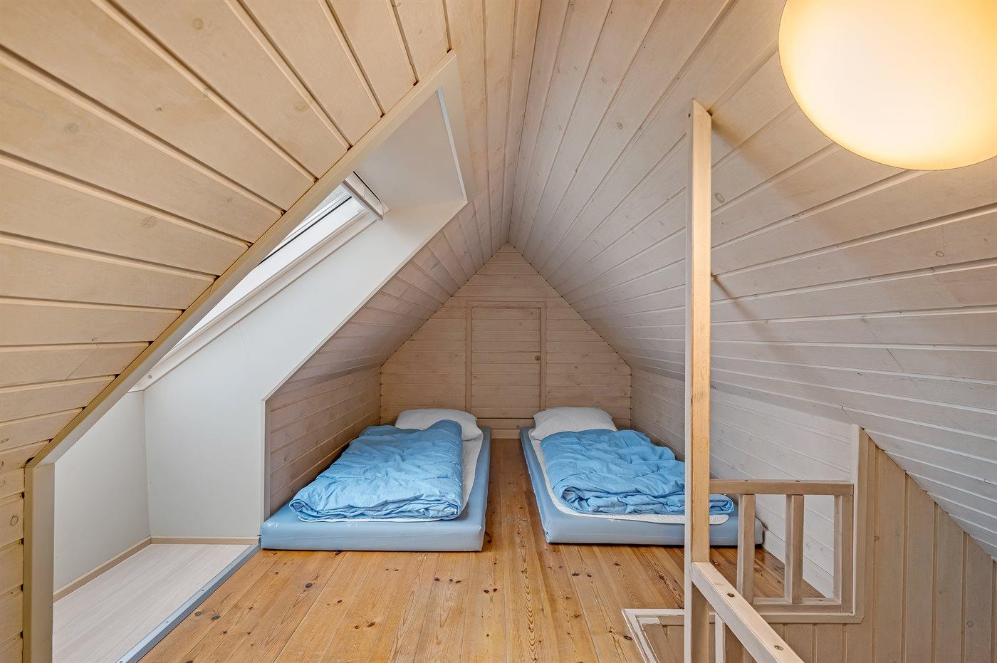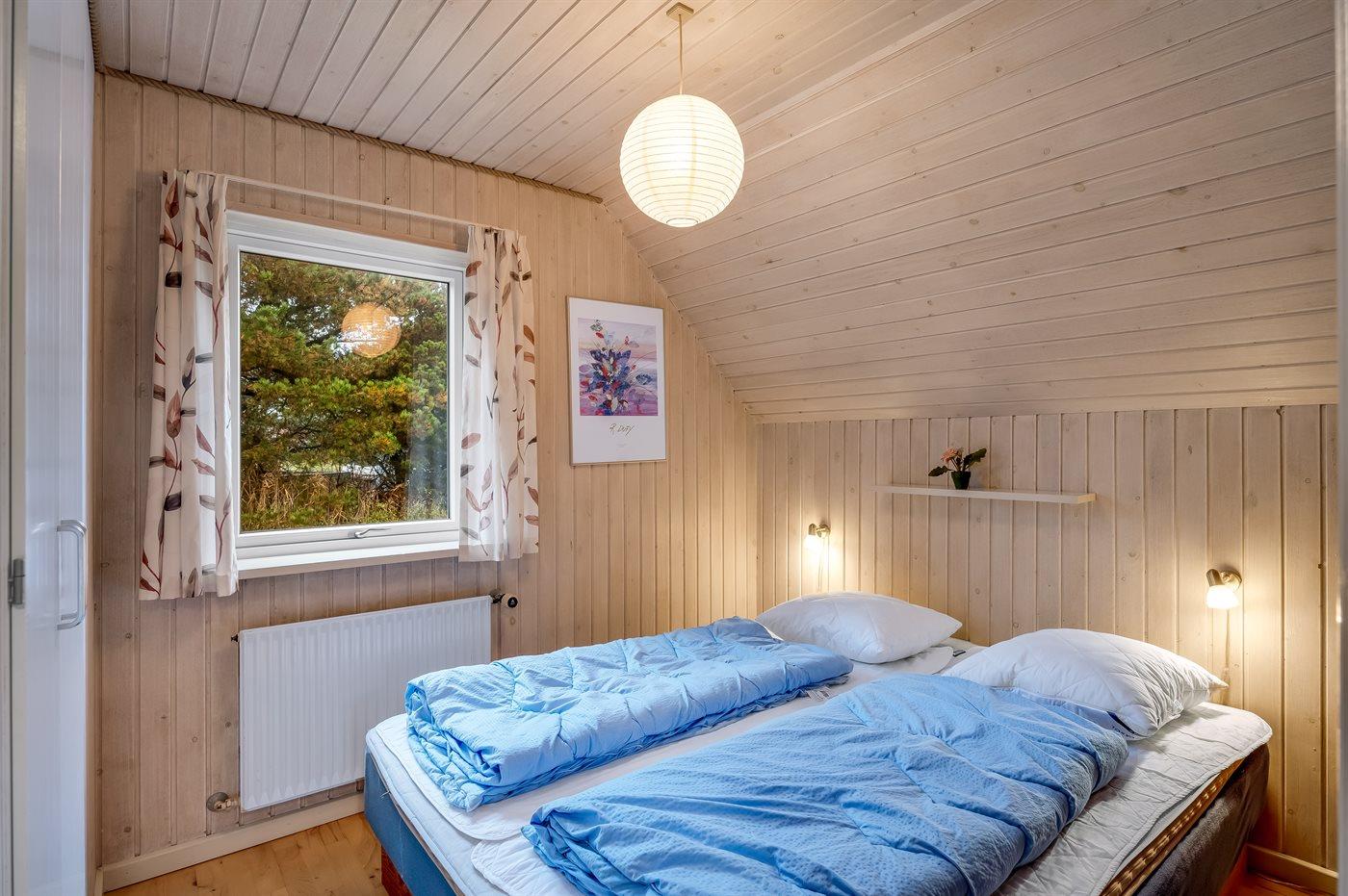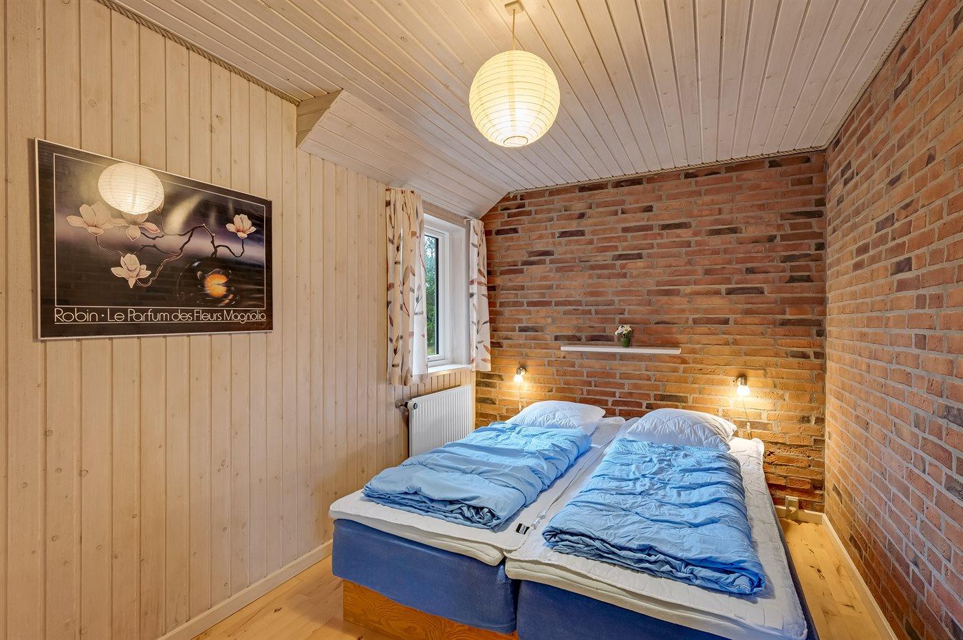 Der er i alt 5 soveværelser. Sovepladserne fordeler sig på: 8 sovepladser i dobbeltsenge. 1 soveplads i enkeltseng. 4 sovepladser på madrasser. 4 af disse sovepladser befinder sig på husets hems. Derudover er der 1 stk. barneseng.