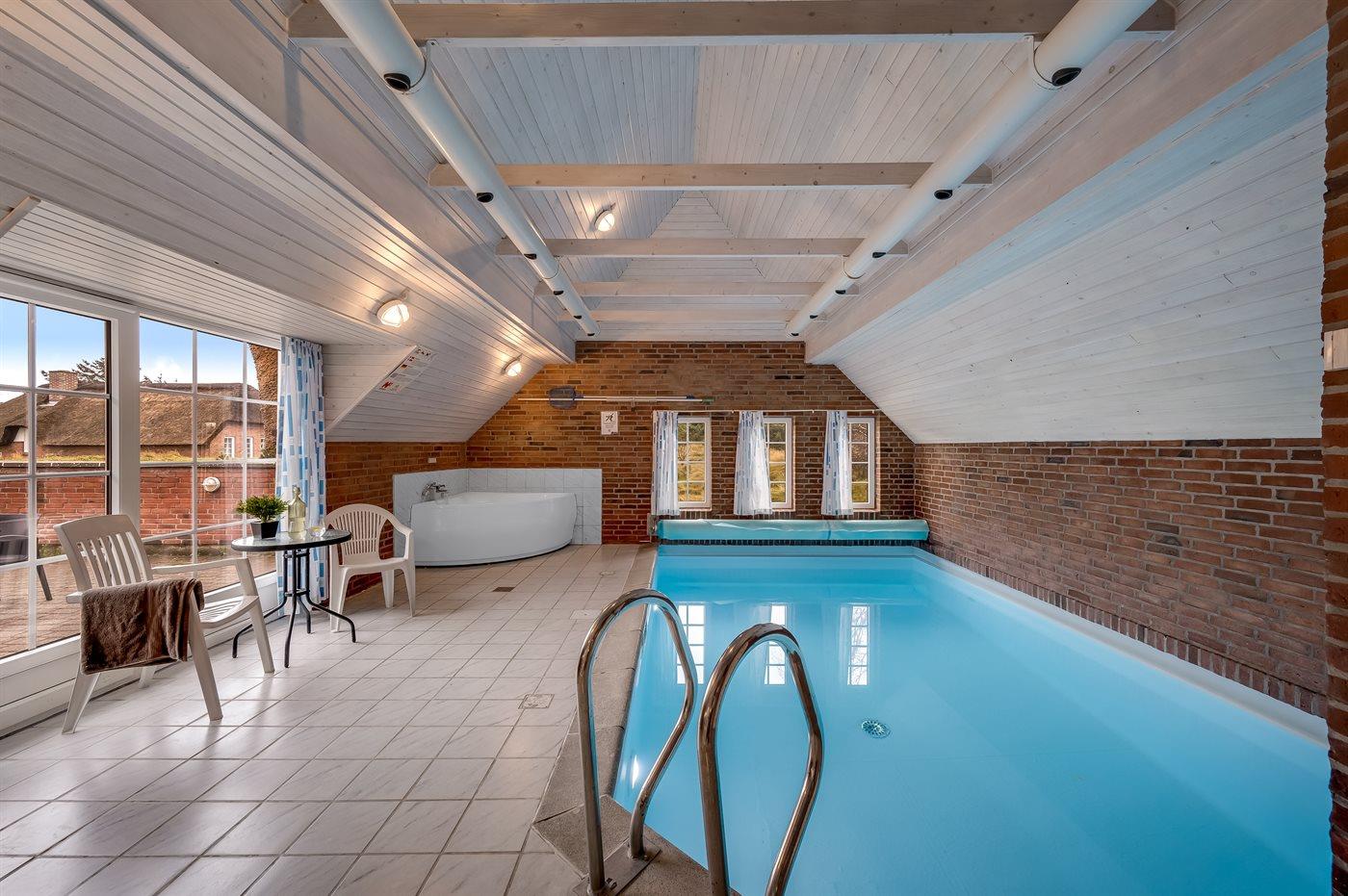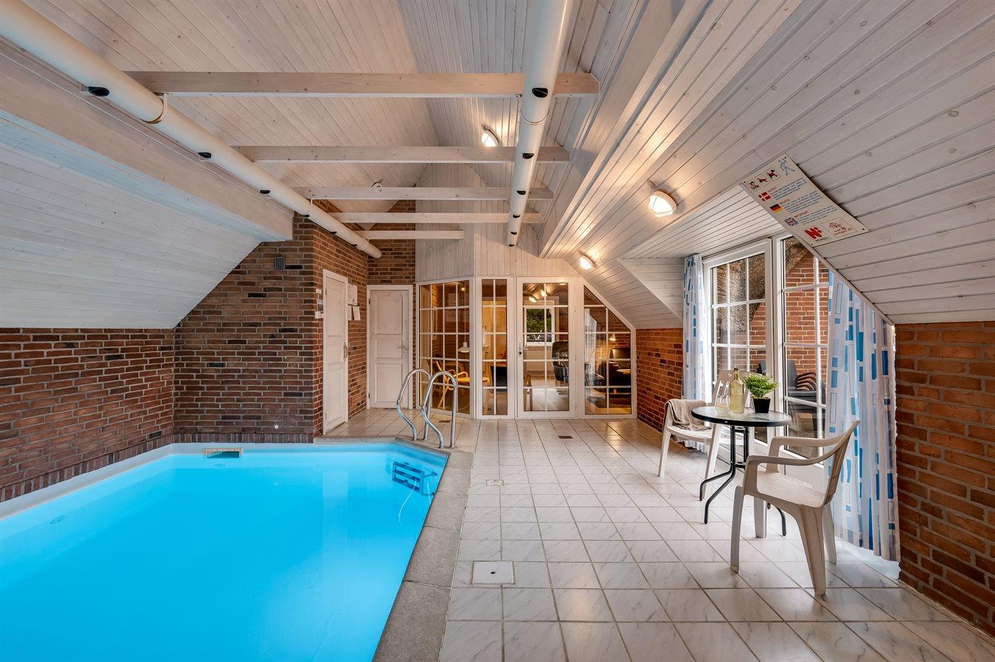 I den indendørs swimmingpool er der mulighed for leg og hyggeligt samvær. Swimmingpoolen måler op til 3,3 m i bredden, 5,6 m i længden og den er op til 1,4 m dyb. Vandet er mellem 24 og 28° C varmt. Der er gulvvarme i swimmingpoolområdet.
