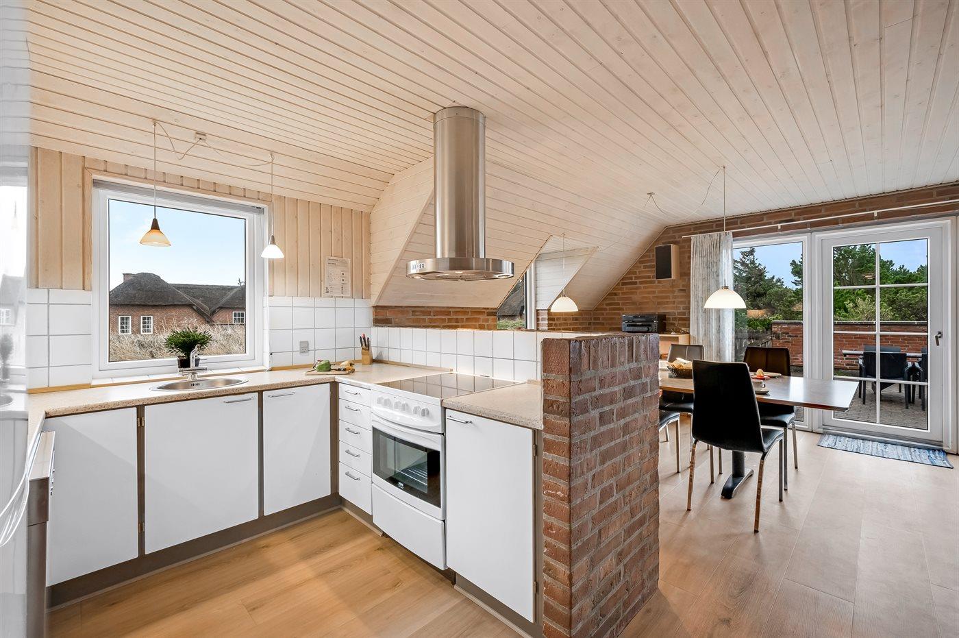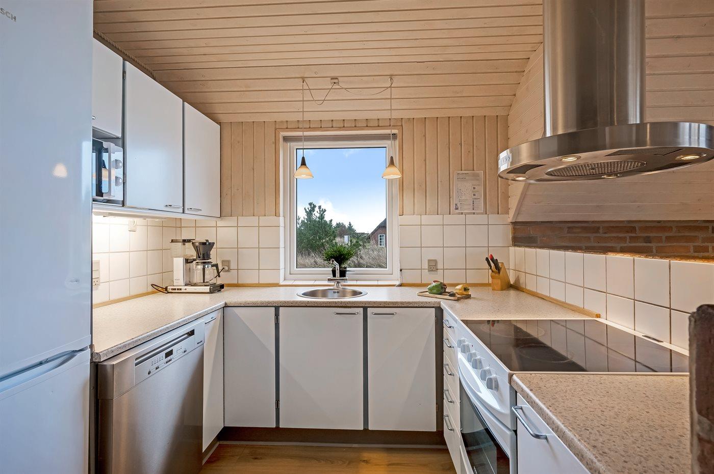 Køkkenet er udstyret med 1 køleskab. Der er 4 keramiske kogeplader, varmluftovn, mikrobølgeovn samt opvaskemaskine.