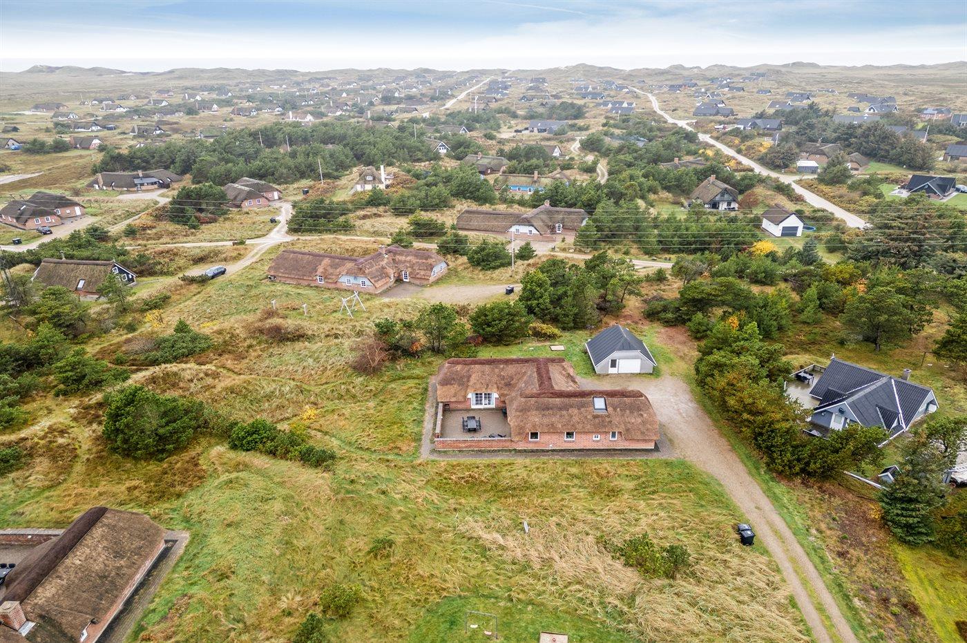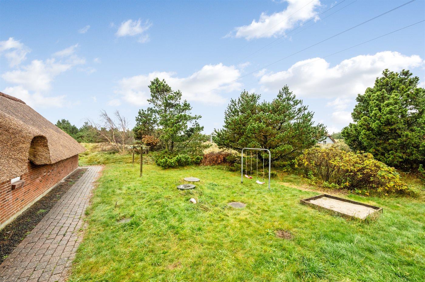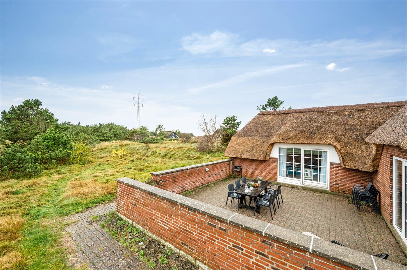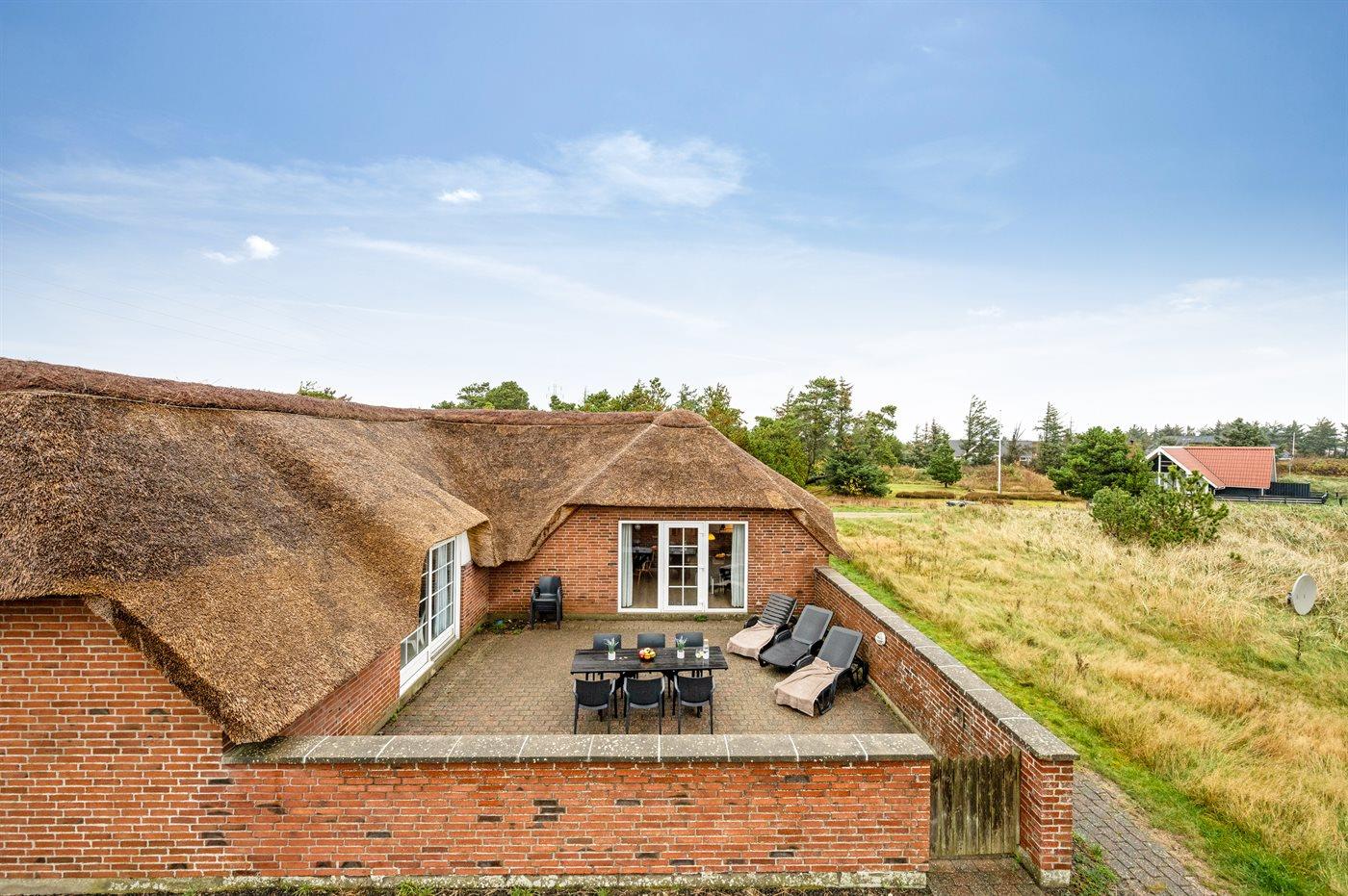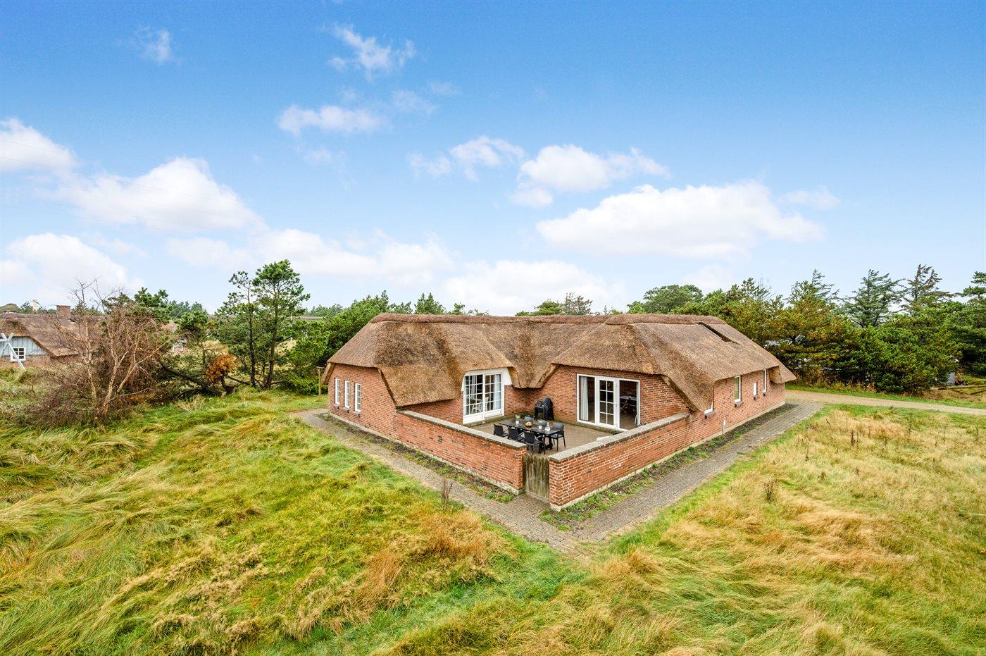 Dette charmerende sommerhus med stråtag ligger på en klitgrund nær Vesterhavet. Her kan man nyde afslappende stunder med familie og venner – både udendørs, på den helt lukkede og indhegnede terrasse, samt indendørs i de hyggelige omgivelser.