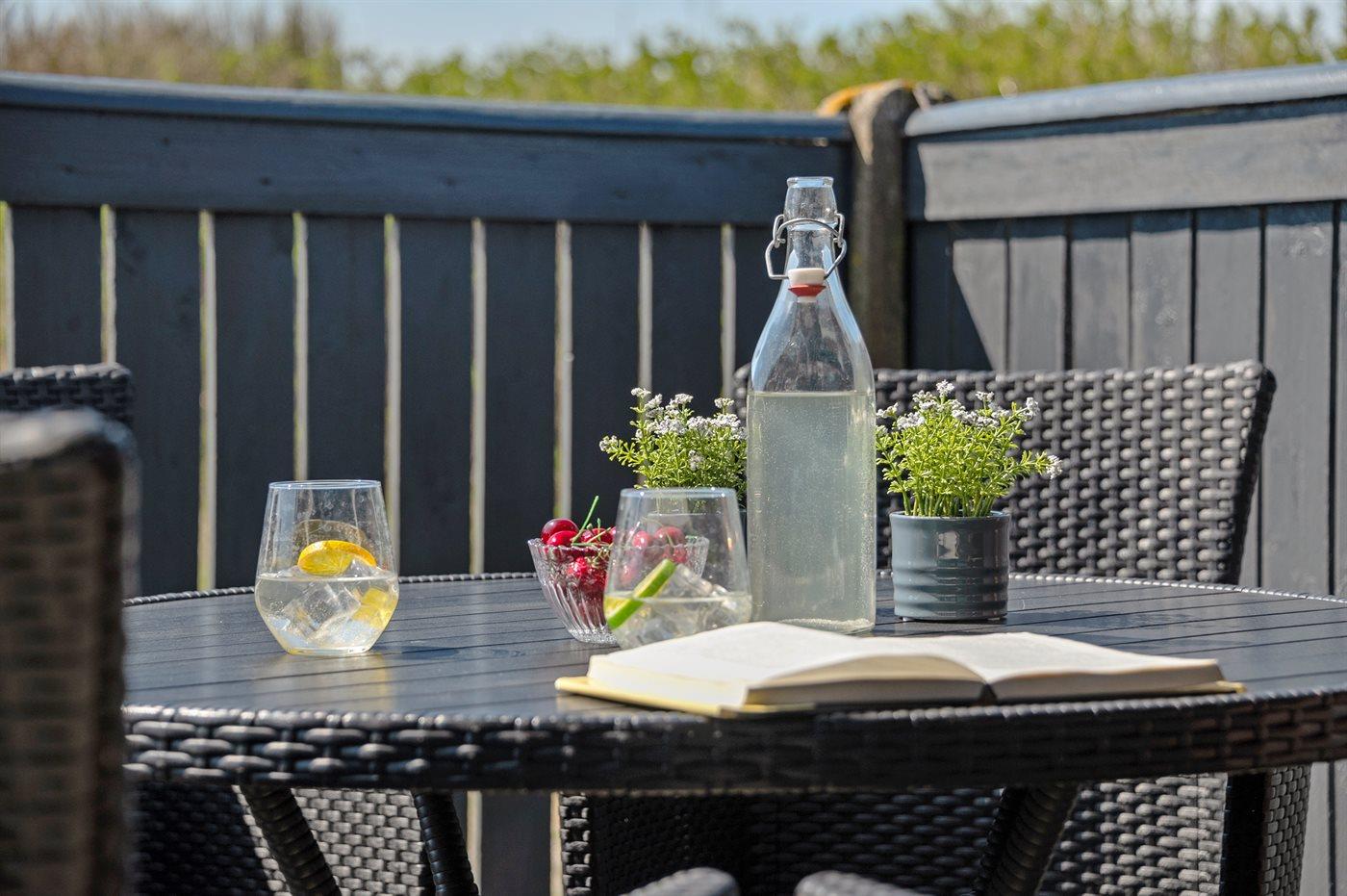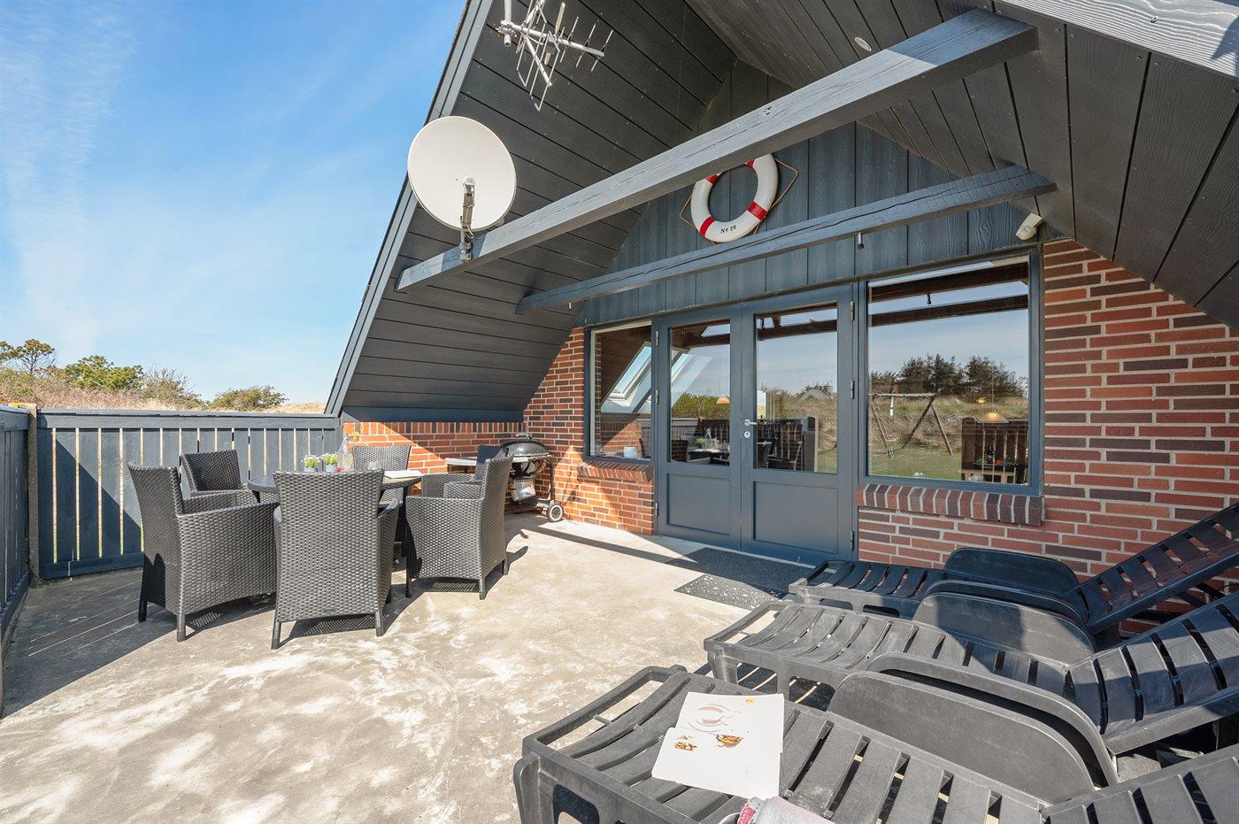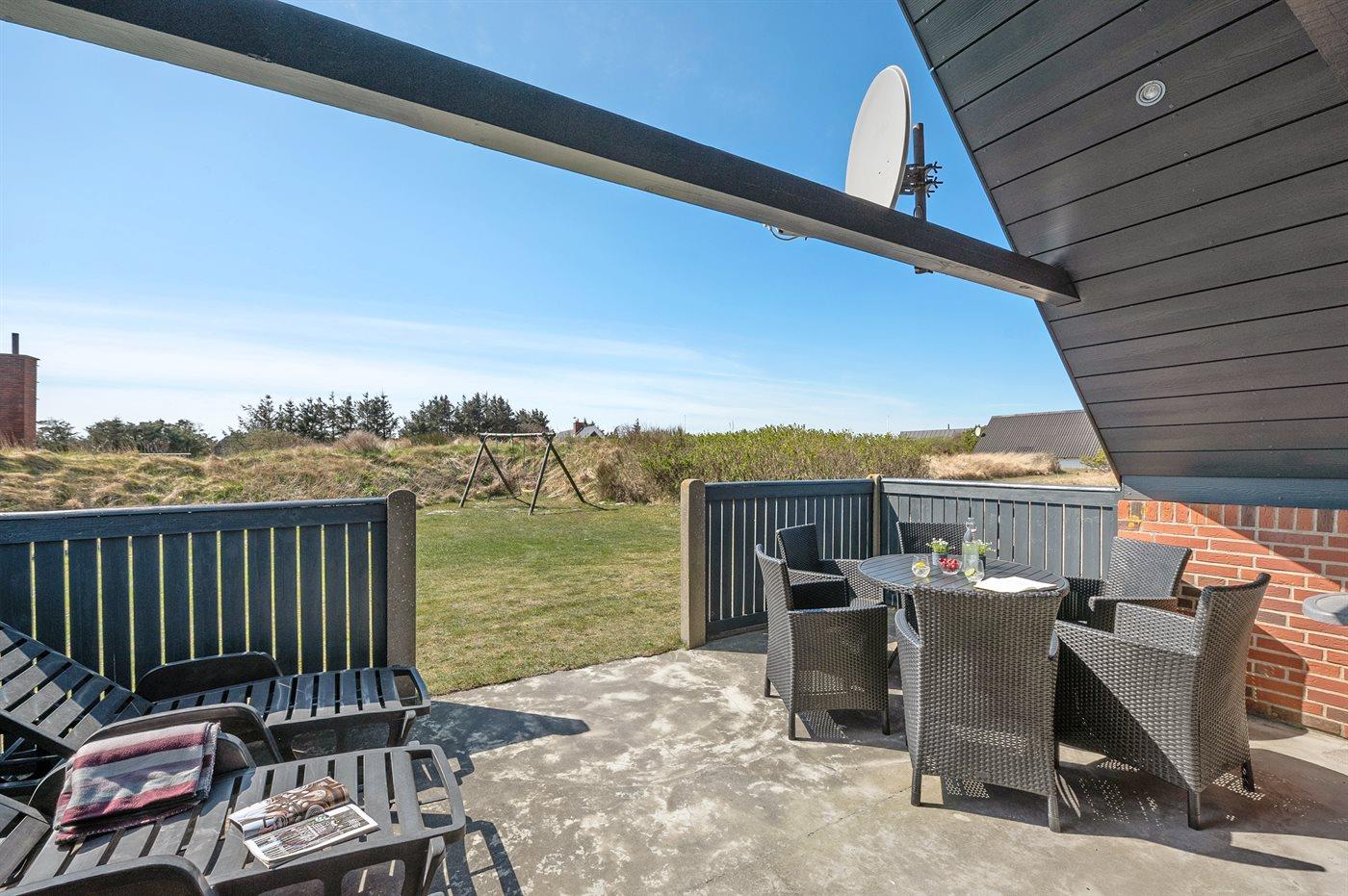 Ferieboligen er beliggende på en 2000 m² stor naturgrund. Der er 800 m til havet. Nærmeste forretning er beliggende i en afstand af 5500 m. Der er en golfbane i en afstand af 6000 m. Til ferieboligen hører 15 m² terrasseareal. Desuden er der 10 m² overdækket terrasse. Gynge. Sandkasse. Der er installeret stik til opladning af elbil. Type 2 stik. Med 11 kW ladeeffekt. Parkering ved ferieboligen.