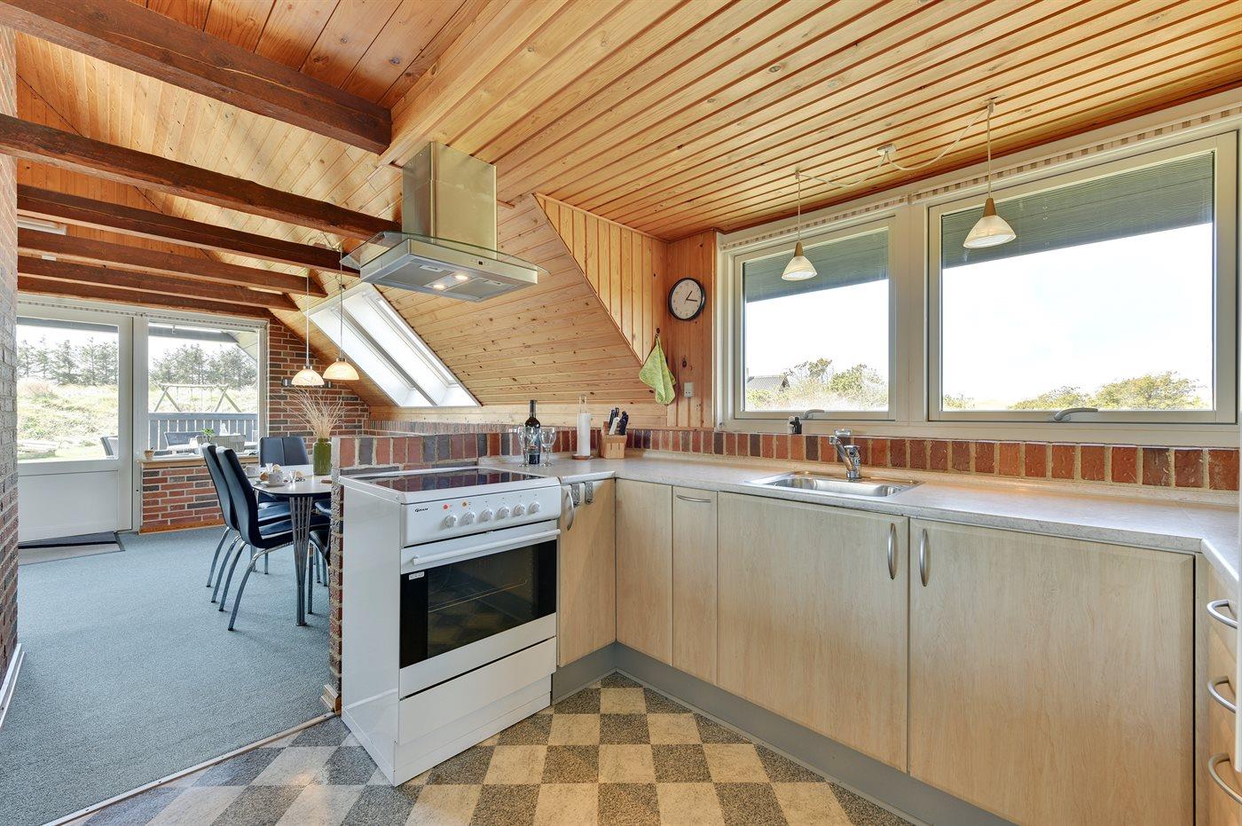 Køkkenet er udstyret med 1 køleskab. Der er 4 keramiske kogeplader, varmluftovn, mikrobølgeovn samt opvaskemaskine.