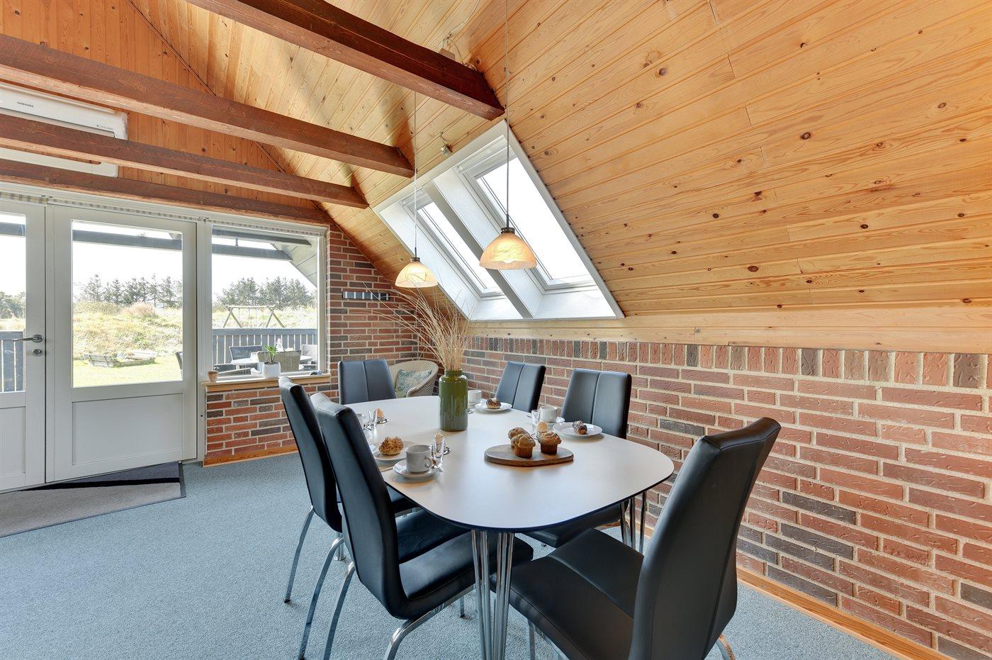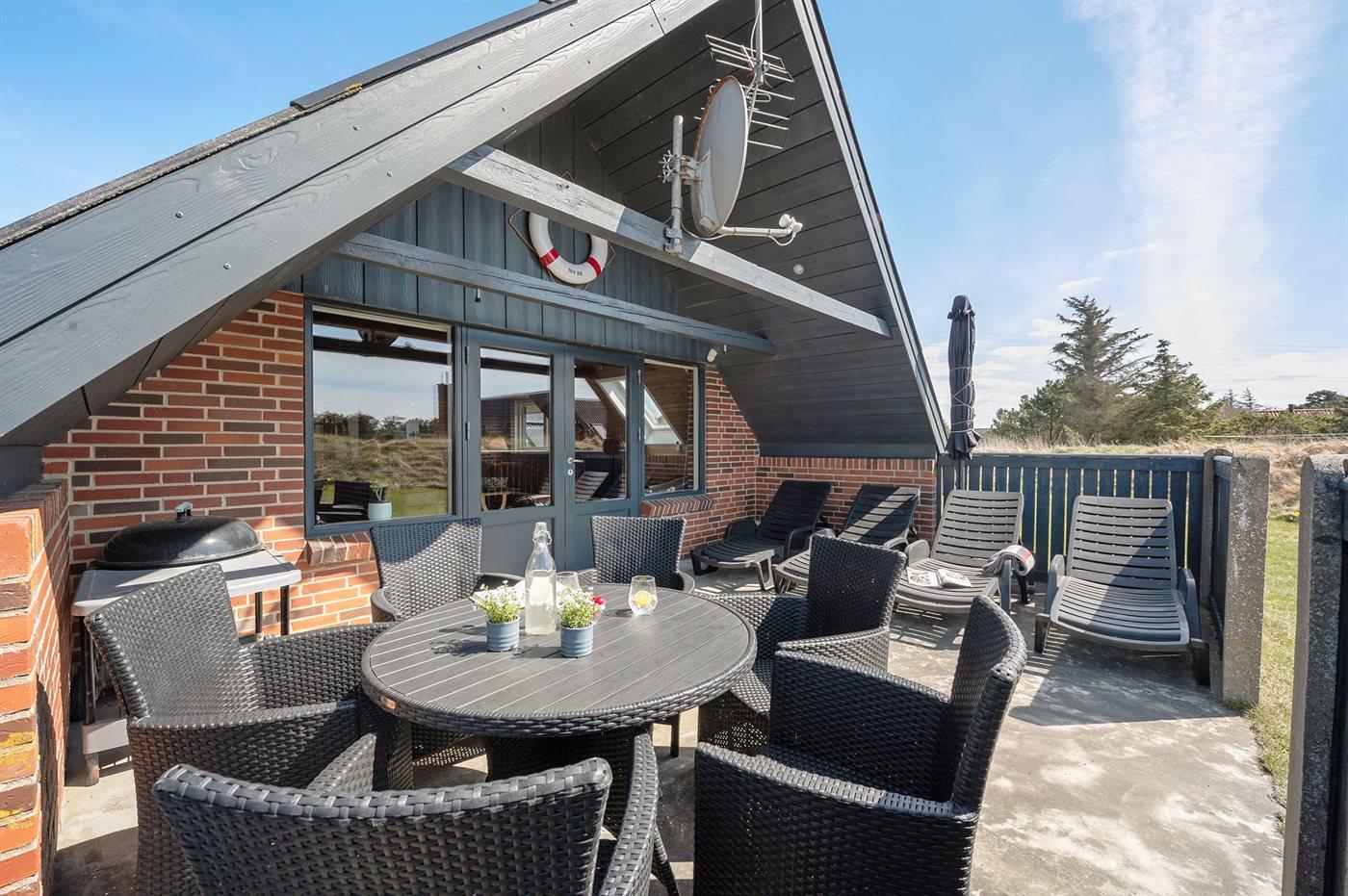 Dejligt og velholdt sommerhus med en fantastisk beliggenhed på en meget stor grund, for enden af lukket vej, og lige op til fredede naturarealer. Huset ligger mellem hav og fjord med udsigt til Ringkøbing Fjord og er indrettet med hems, hvor 2 af sovepladserne befinder sig.