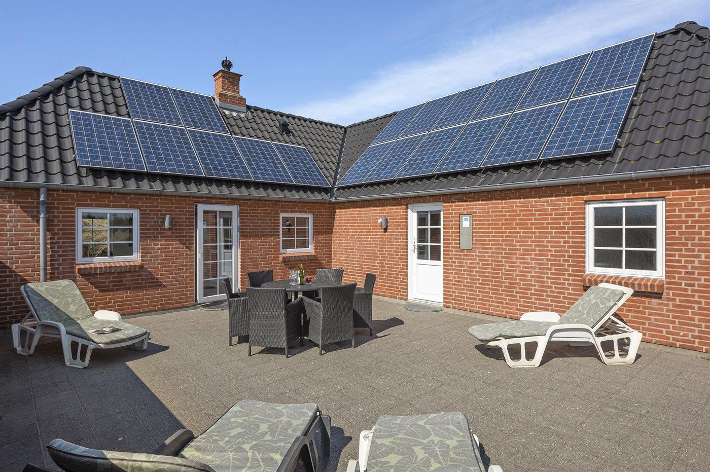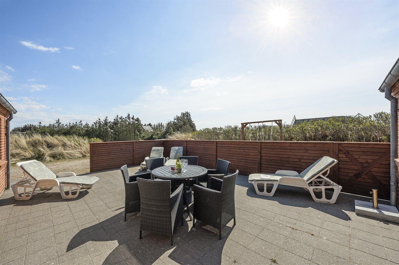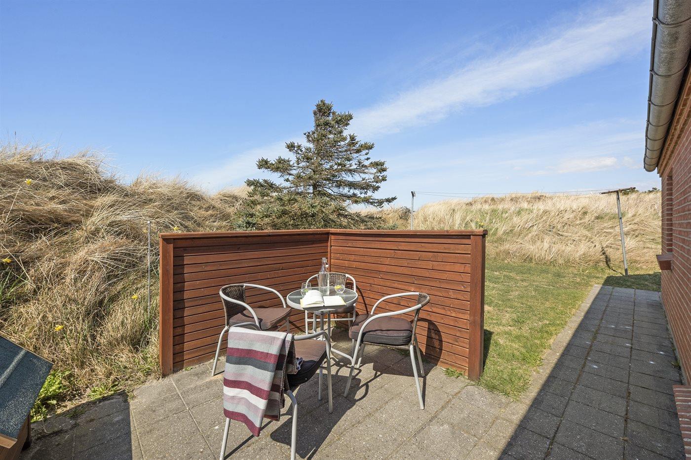 Ferieboligen er beliggende på en 1991 m² stor naturgrund. Grunden er indhegnet. Der er 800 m til havet. Nærmeste forretning er beliggende i en afstand af 6000 m. Der er en golfbane i en afstand af 7000 m. Til ferieboligen hører 40 m² terrasseareal. Egen hundegård til rådighed. Gynge. Sandkasse. Der er installeret stik til opladning af elbil. Type 2 stik. Med 11 kW ladeeffekt. Parkering ved ferieboligen.