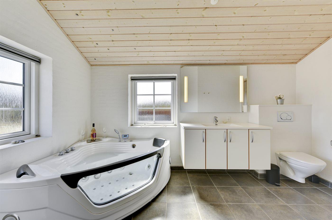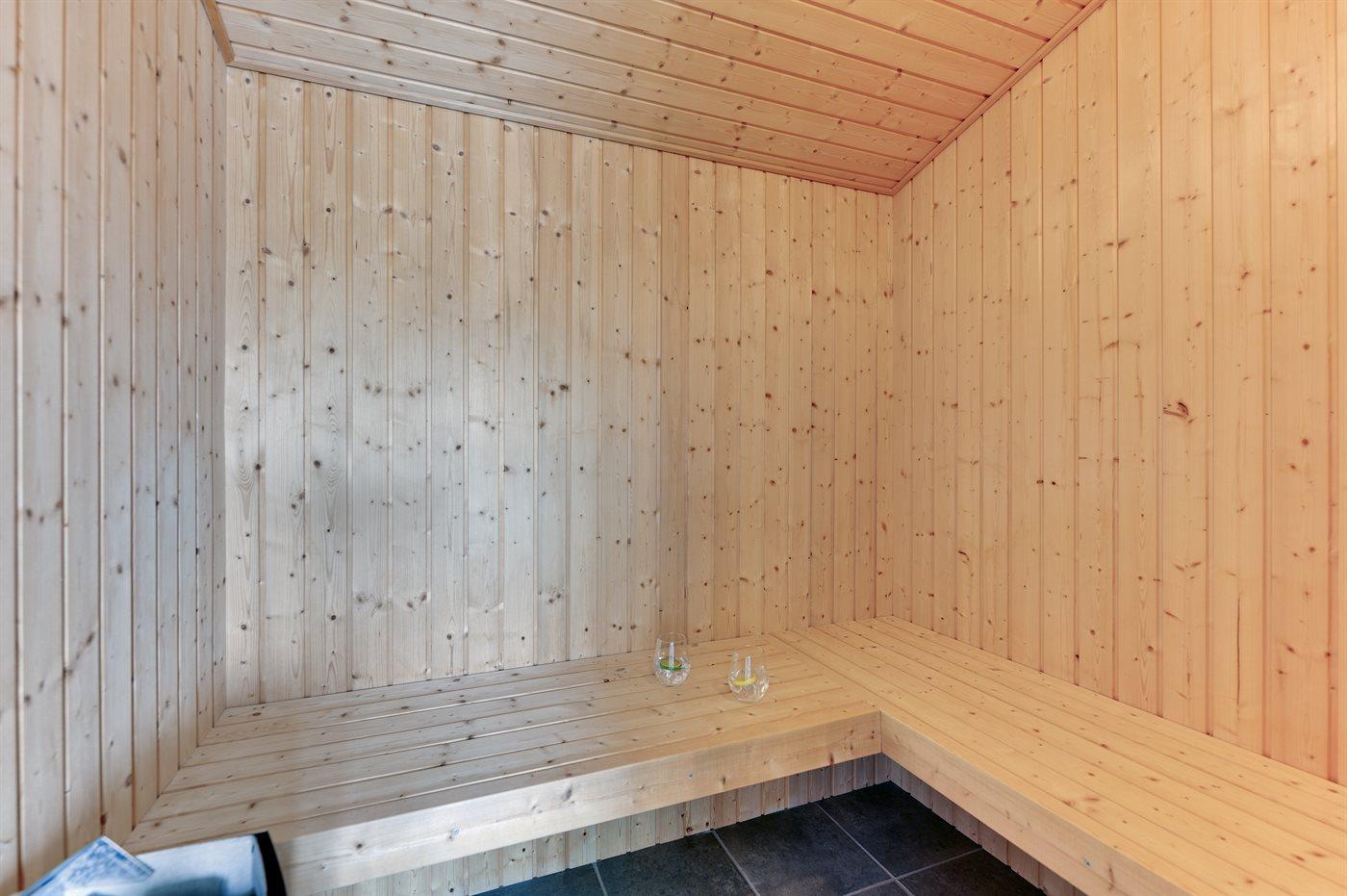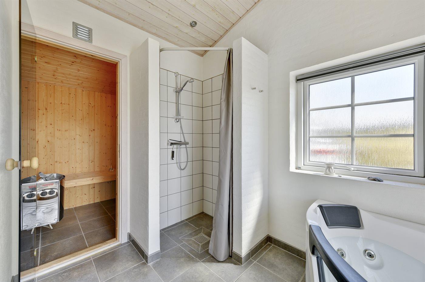 Der er 2 badeværelser med bruseniche og 2 toiletter. Der er gulvvarme på 2 badeværelser. I saunaen er der mulighed for afslapning.