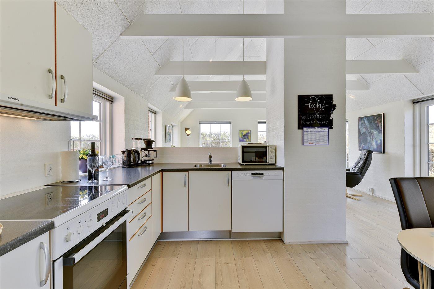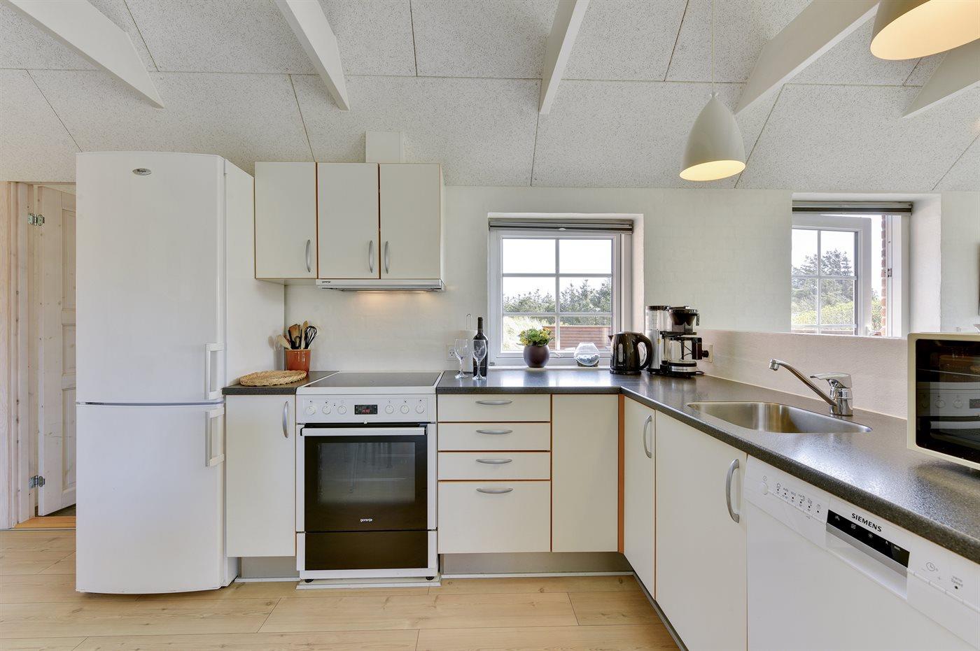 Køkkenet er udstyret med 1 køleskab. Der er 4 keramiske kogeplader, varmluftovn, mikrobølgeovn samt opvaskemaskine.