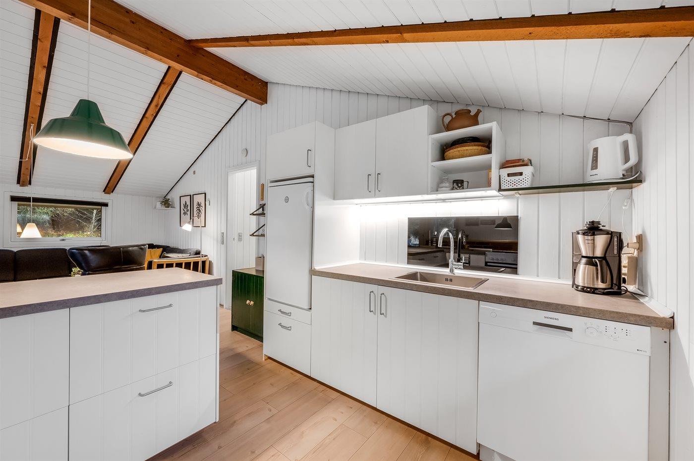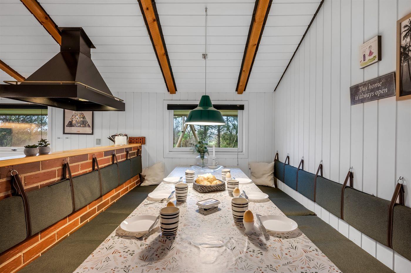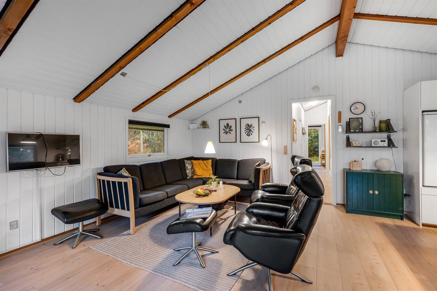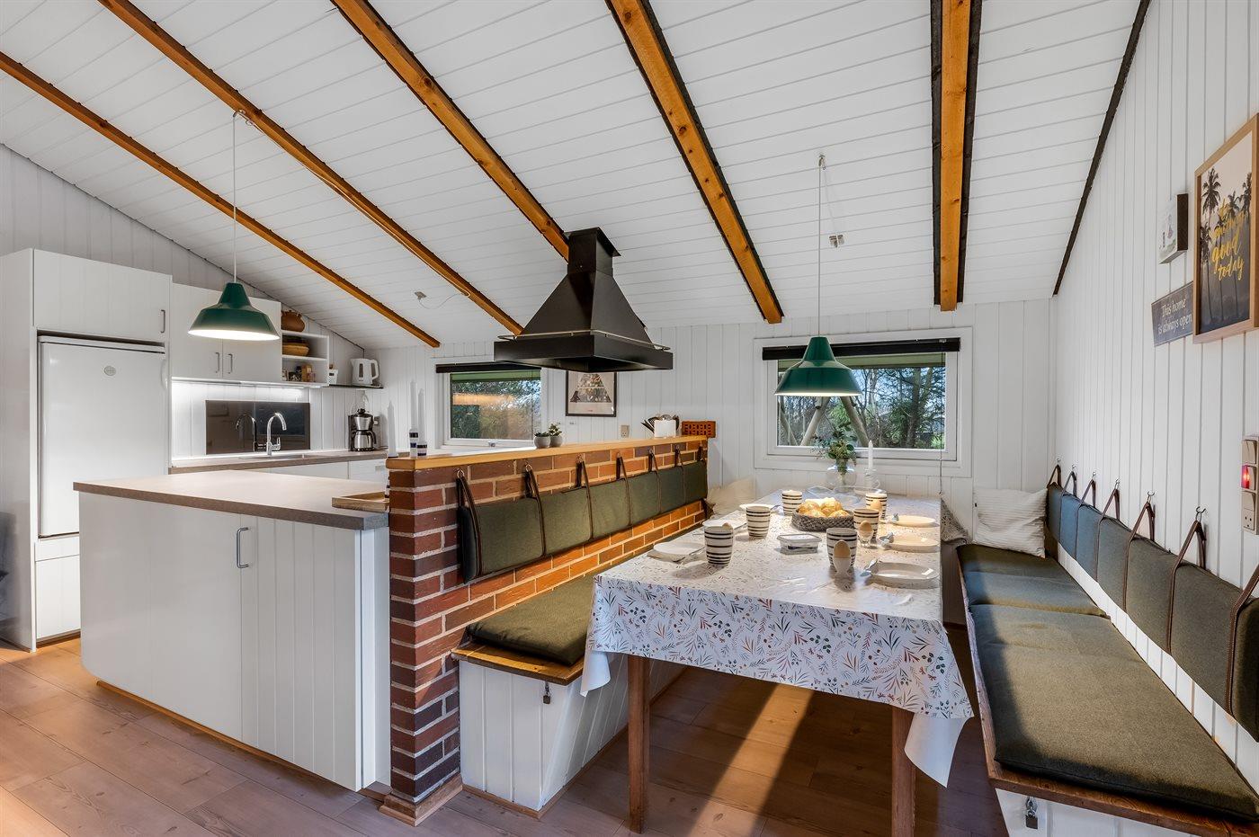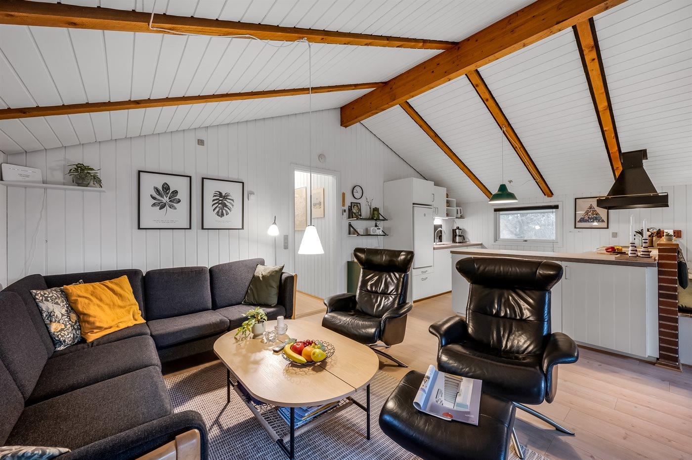 Indenfor mødes I af en lys og indbydende atmosfære, hvor træpanelerne og de lyse vægge skaber en varm og afslappet stemning. Her vil I hurtigt føle jer hjemme og finde alt, hvad I behøver for en dejlig ferie.