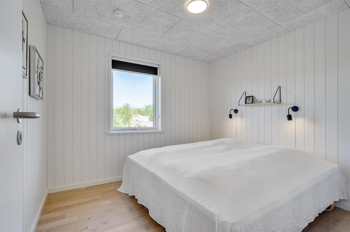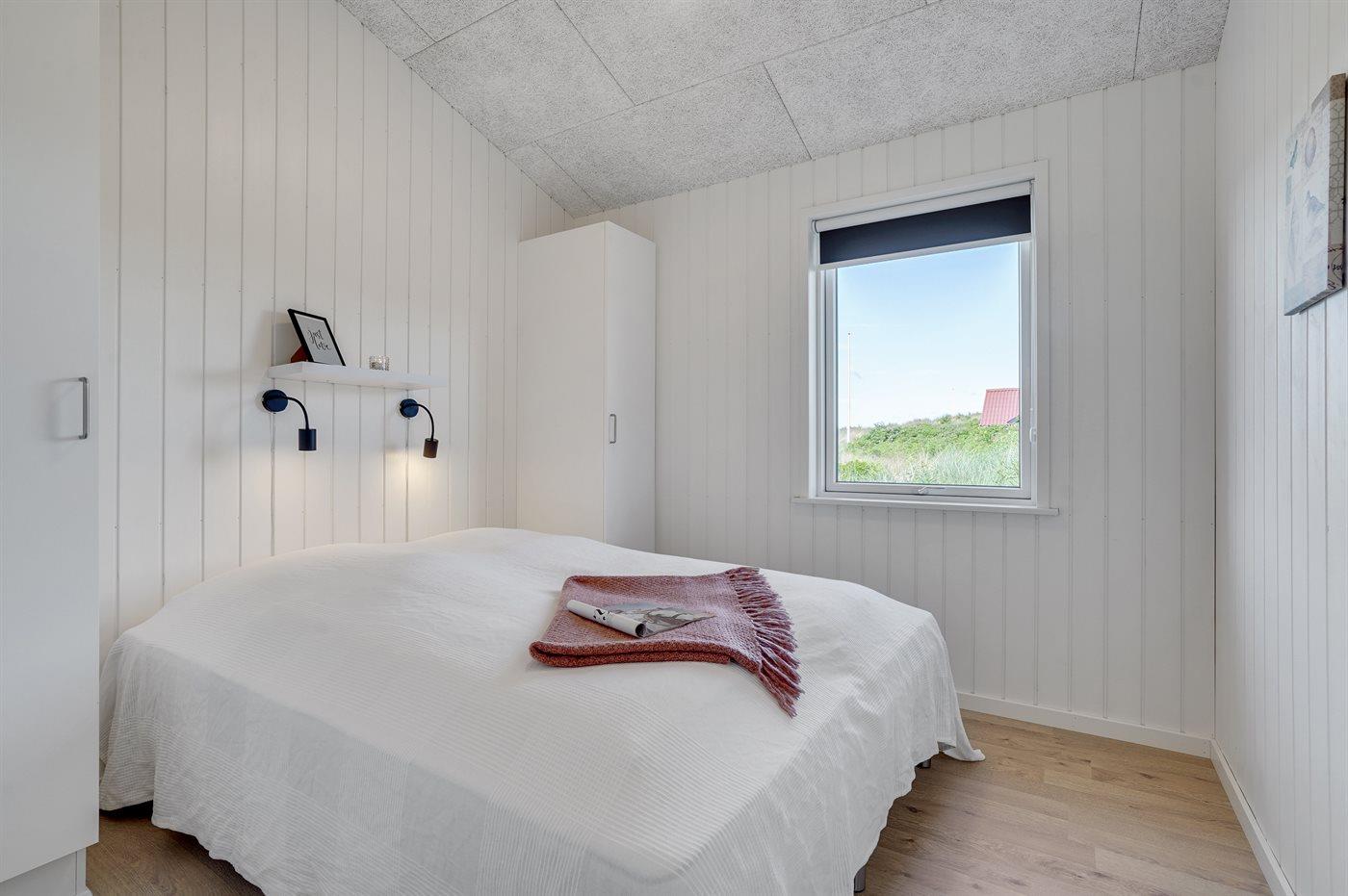 Der er i alt 3 soveværelser. Sovepladserne fordeler sig på: 4 sovepladser i dobbeltsenge. 2 sovepladser i enkeltsenge. Derudover er der 1 stk. barneseng.