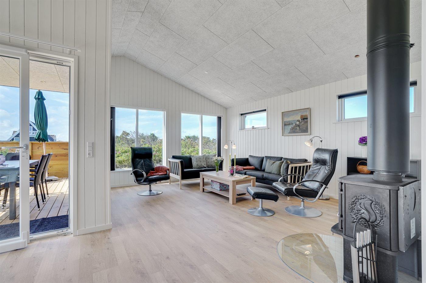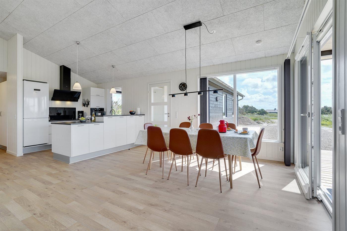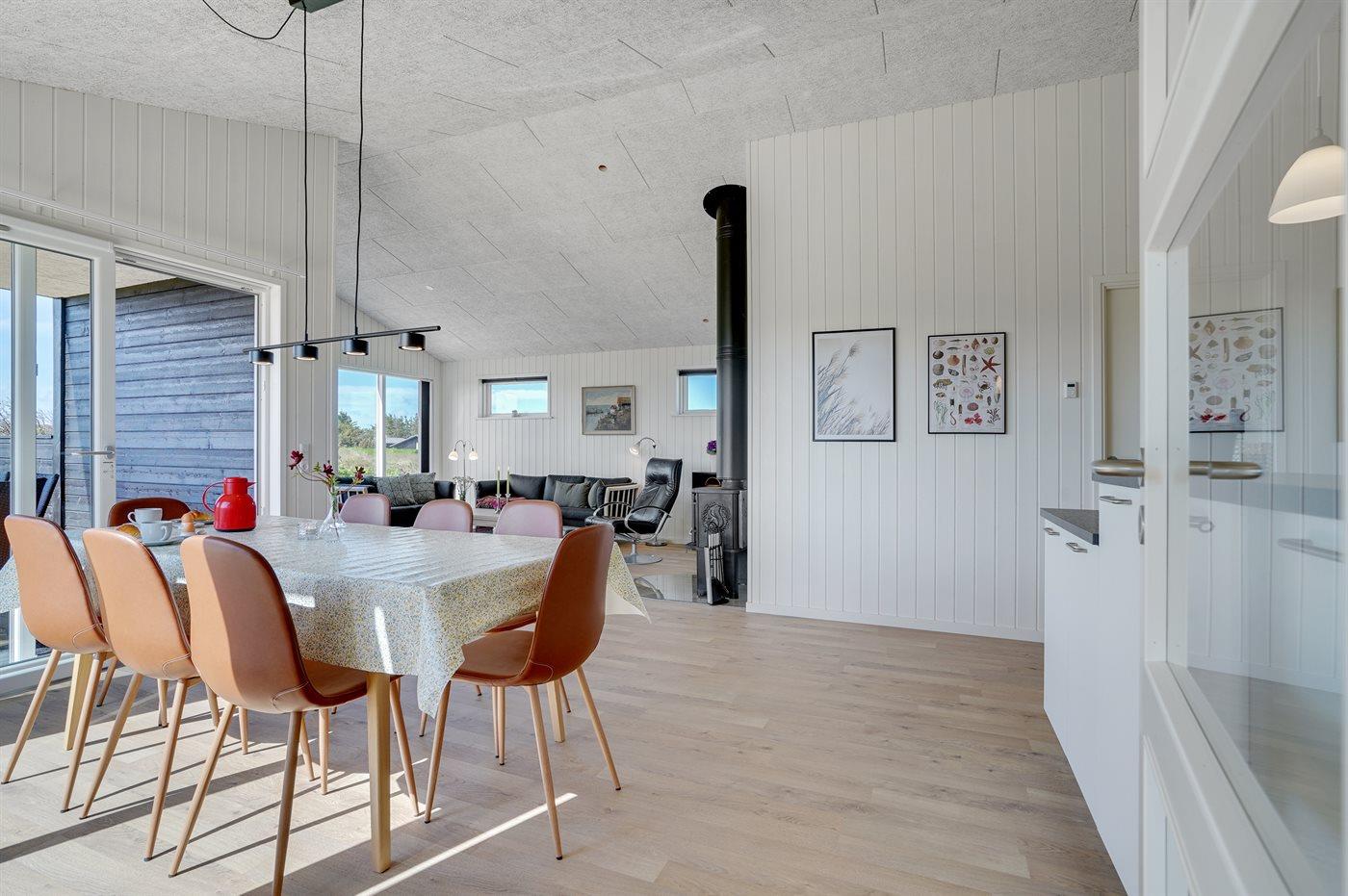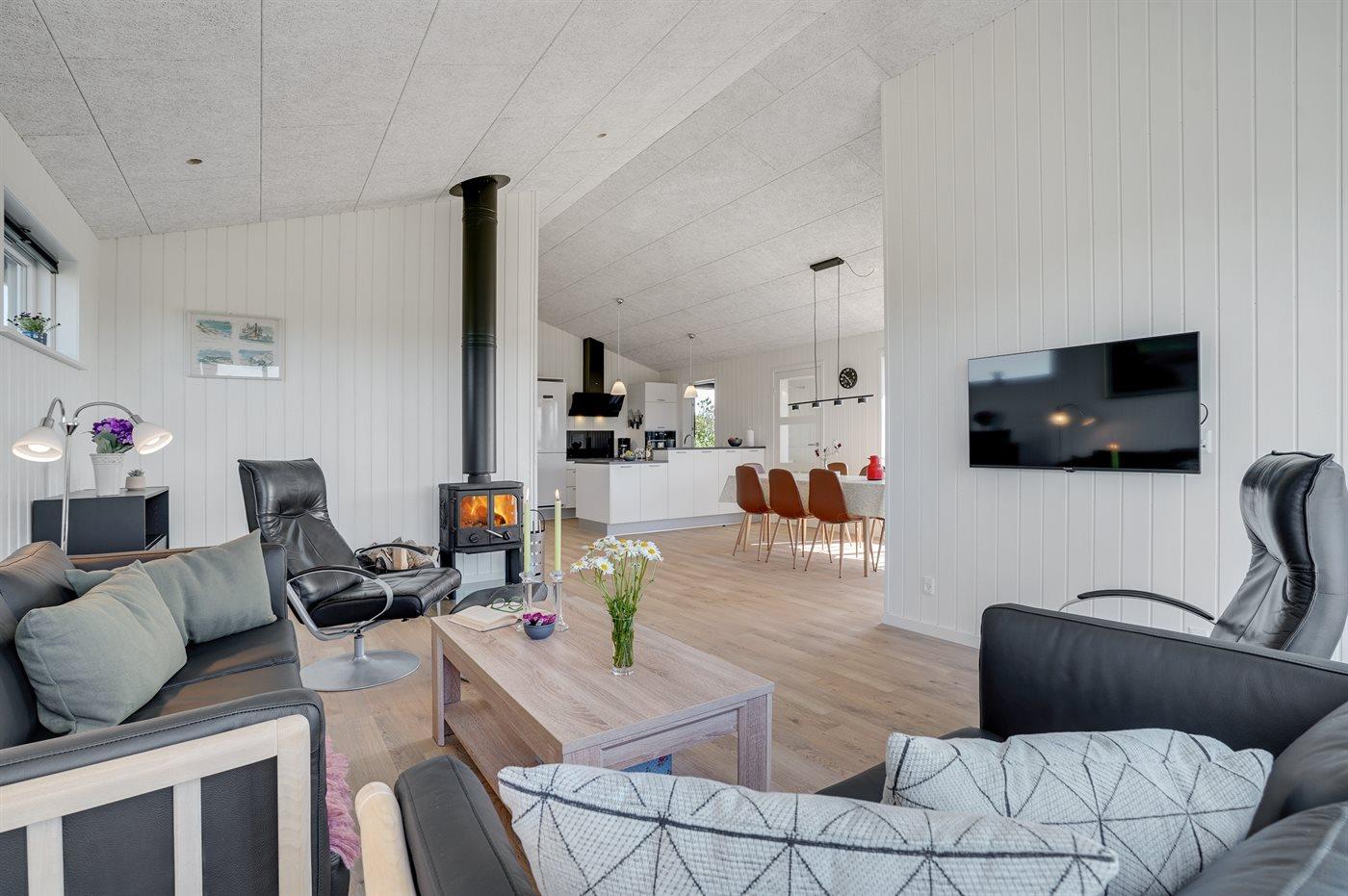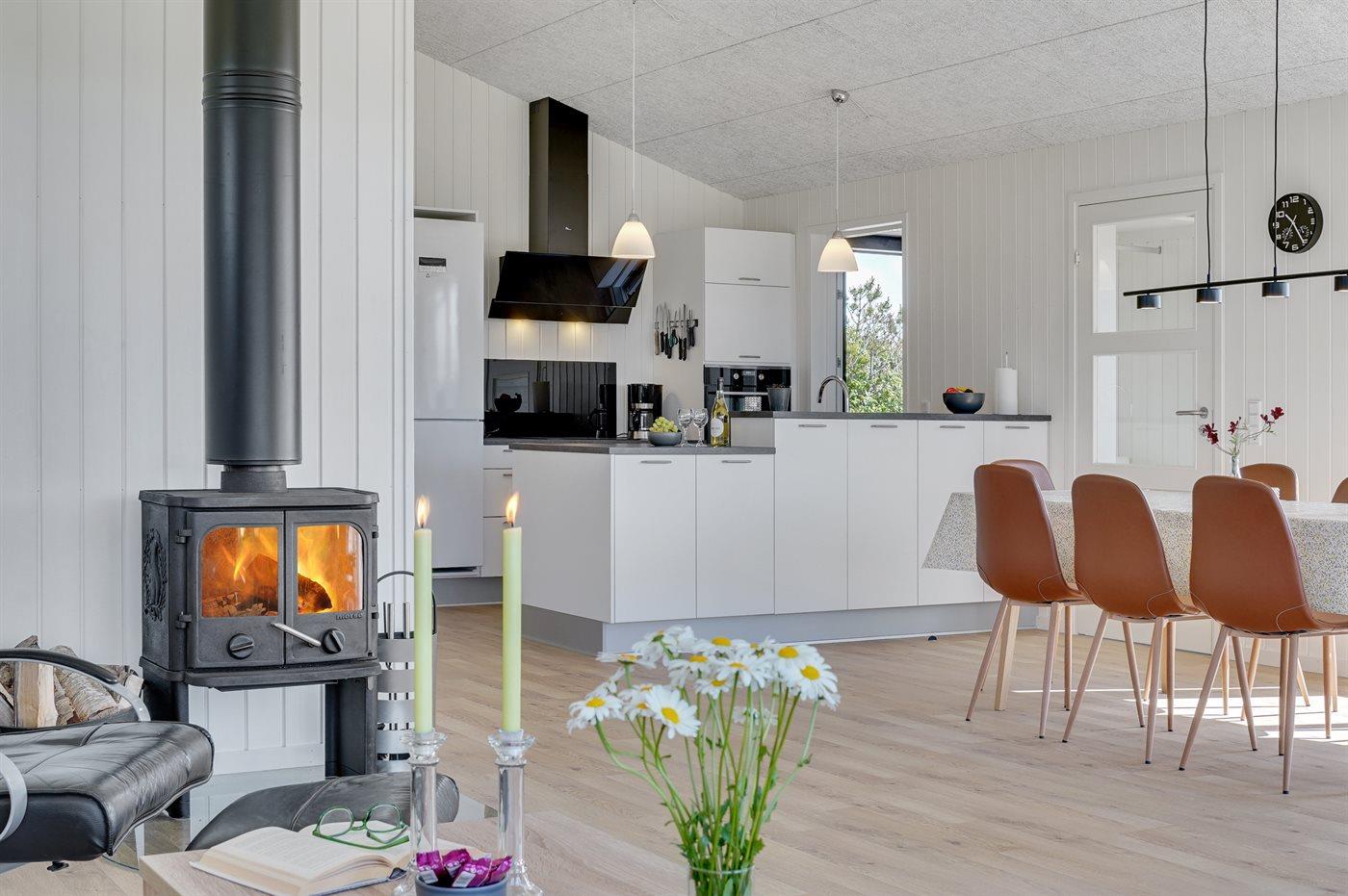 Sommerhuset egner sig til 6 personer samt 1 barn op til 3 år. Ferieboligen er på 115 m² og er bygget i 2021. Det er tilladt at medbringe 1 husdyr. Ferieboligen er udstyret med energibesparende varmepumpe. Hele ferieboligen har gulvvarme. Ferieboligen har vaskemaskine. Tørretumbler. Frysekapacitet på 109 liter. Der er desuden brændeovn. Til de små er der 1 stk. barnestol.