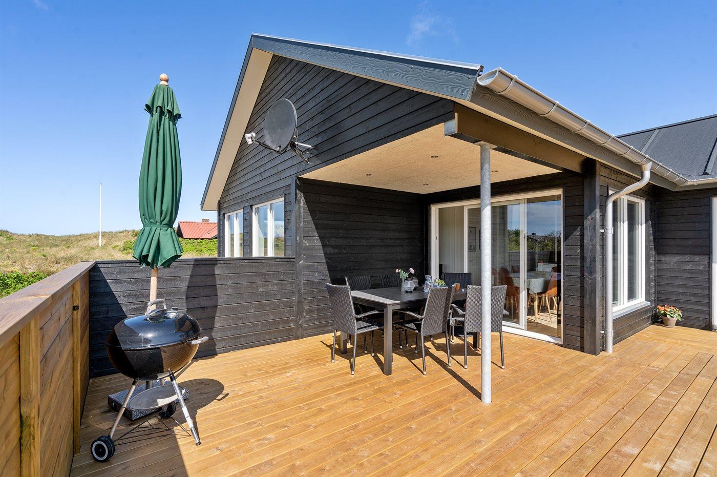 Ferieboligen er beliggende på en 2000 m² stor naturgrund. Der er 800 m til havet. Der er 900 m til fjorden. Nærmeste forretning er beliggende i en afstand af 2400 m. Der er en golfbane i en afstand af 3500 m. Til ferieboligen hører 30 m² terrasseareal. Desuden er der 17 m² overdækket terrasse. Parkering ved ferieboligen.