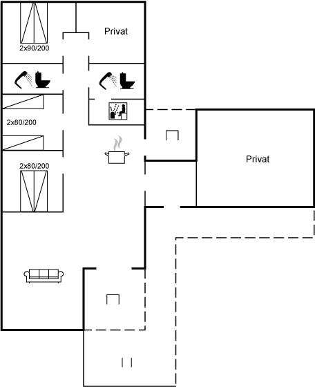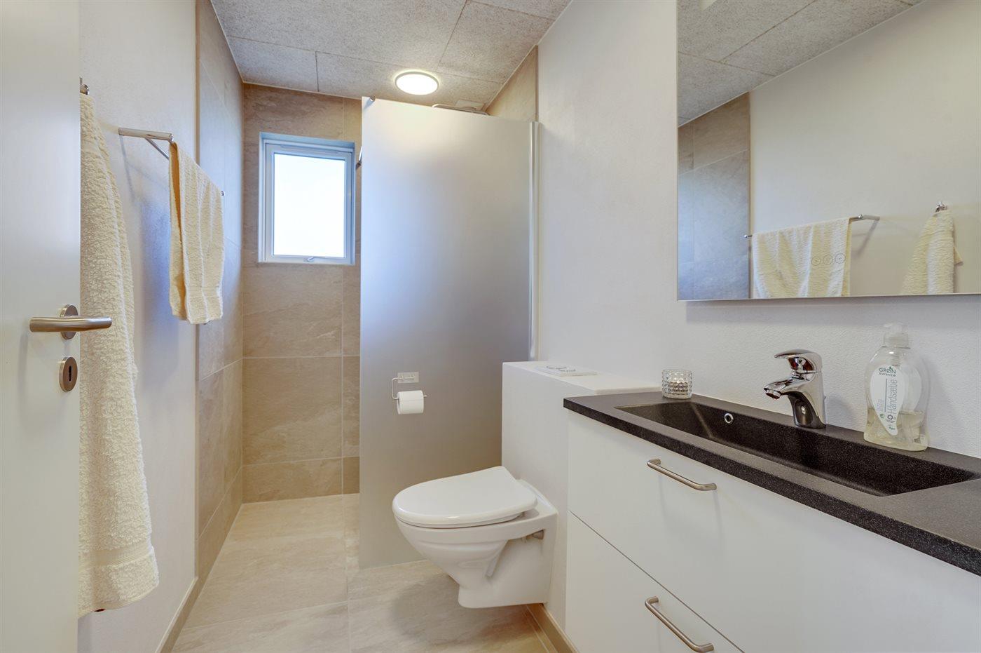 Der er 2 badeværelser med bruseniche og 2 toiletter. Der er gulvvarme på 2 badeværelser. I saunaen er der mulighed for afslapning.