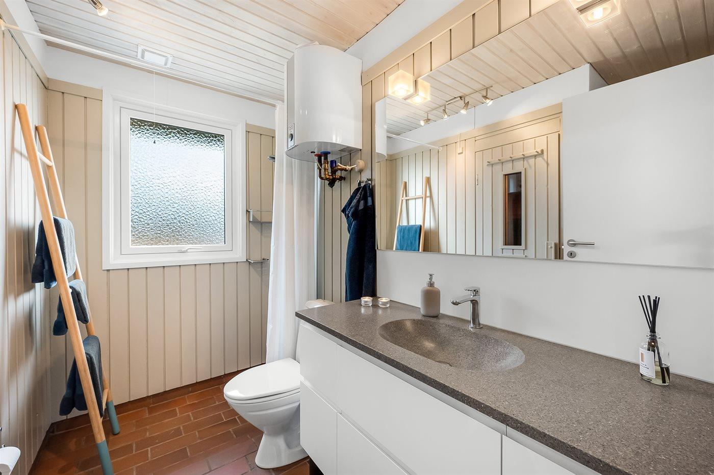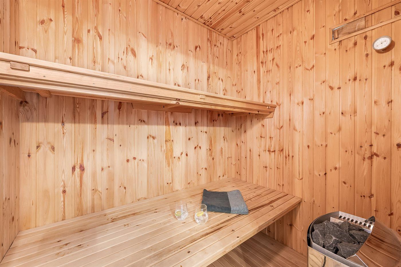 Der er 1 badeværelse med bruseniche og 1 toilet.. Der er gulvvarme på 1 badeværelse. I saunaen er der mulighed for afslapning.