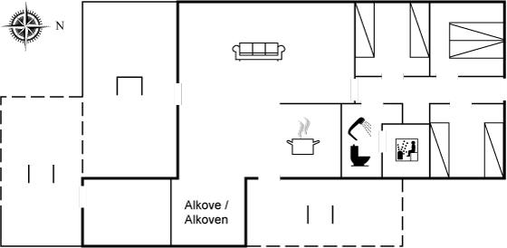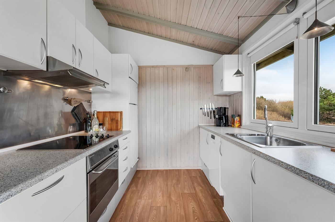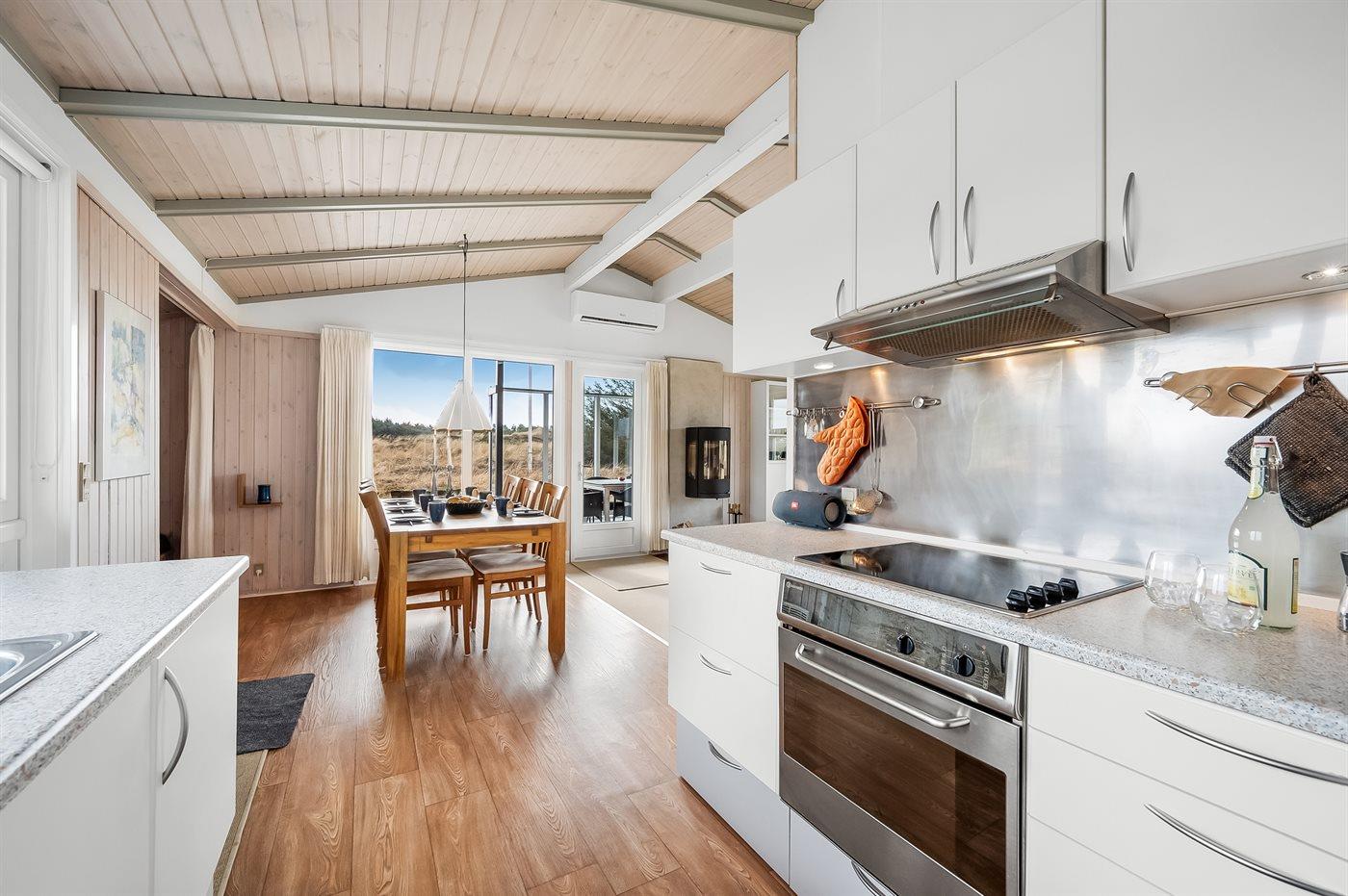 Køkkenet er udstyret med 1 køleskab. Der er 4 keramiske kogeplader, varmluftovn samt opvaskemaskine.