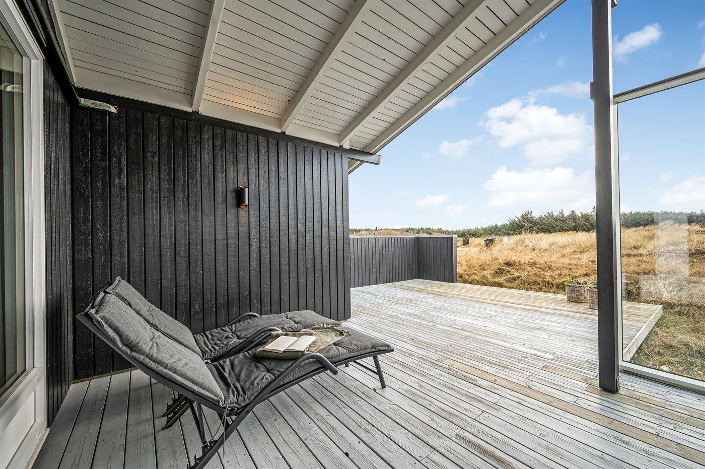 Ferieboligen er beliggende på en 2899 m² stor naturgrund. Der er 700 m til havet. Nærmeste forretning er beliggende i en afstand af 3000 m. Til ferieboligen hører åbent terrasseareal. Desuden er der overdækket terrasse. Der er installeret stik til opladning af elbil. Med 11 kW ladeeffekt. Parkering ved ferieboligen.