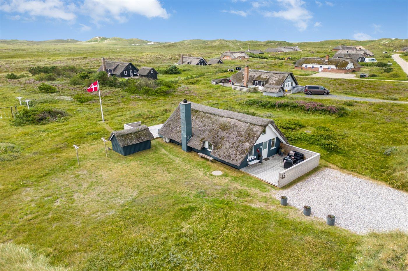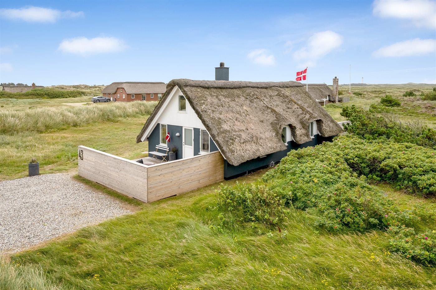 Stor naturgrund i Klegod - kun 400 meter fra stranden Sommerhuset på Nordsø Ferievej 43 ligger på en skøn naturgrund på 2100 m2. Fra terrassen kan I nyde de naturskønne omgivelser, mens I daser i liggestolene eller samles rundt om havebordet til en lækker frokost i solen. Der er rig mulighed for afslapning med udsigt til den rå natur og Nr. Lyngvig fyr.
