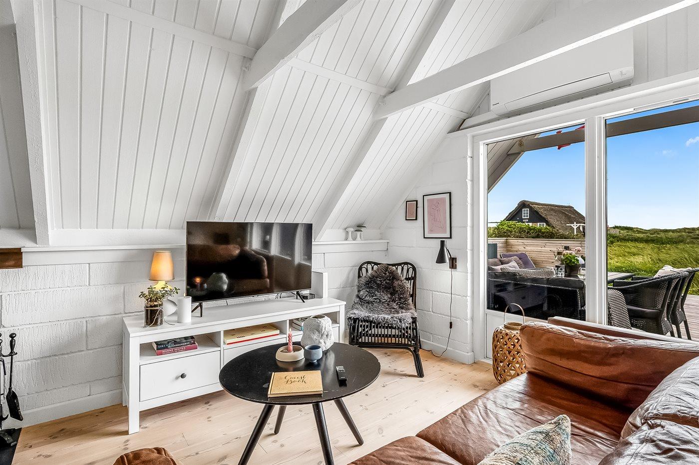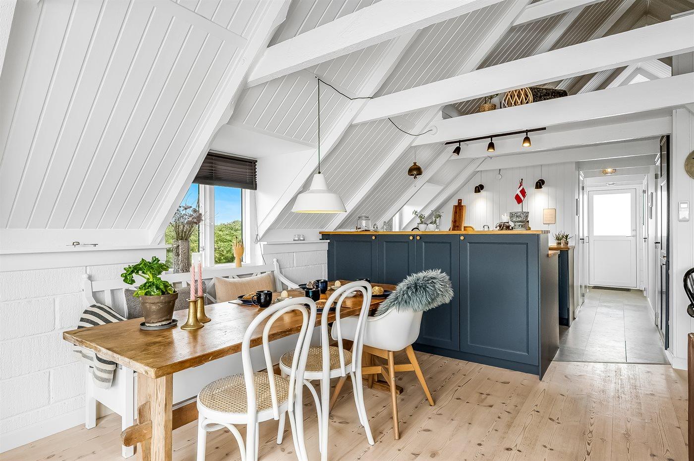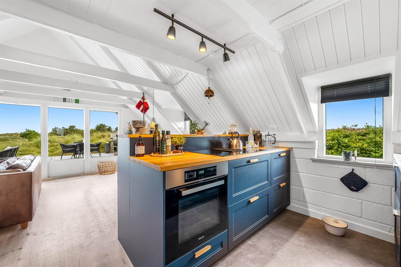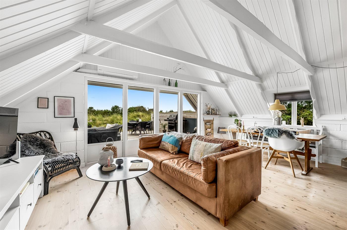 Totalrenoveret sommerhus med velafstemt indretning og brændeovn på stor åben grund i naturskønt sommerhusområde imellem hav og fjord