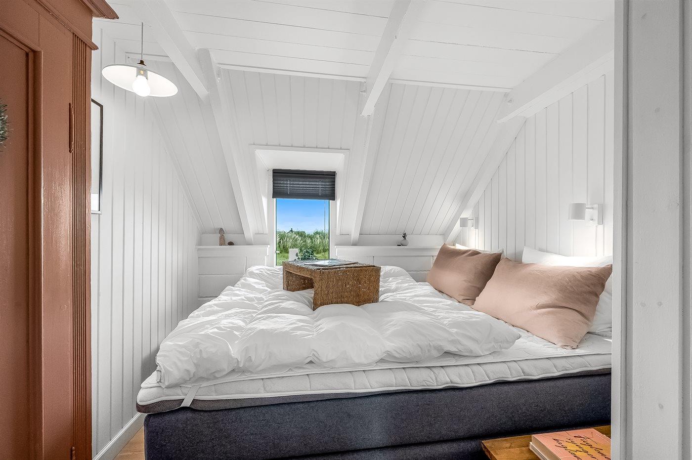 Huset er indrettet med 2 soverum med gode kvalitets-dobbeltsenge. Herudover er huset indrettet med hems, hvor 2 af sovepladserne befinder sig. Huset er udstyret med varmepumpe, vaskemaskine/tørretumbler samt fryse kapacitet på 40 liter. Derudover er der er trådløst internet til rådighed i feriehuset.