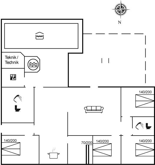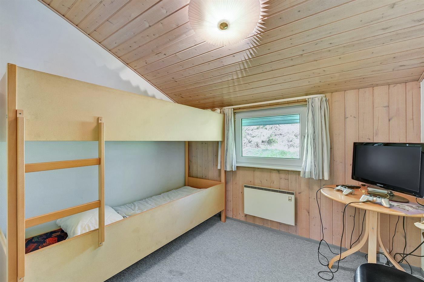 Der er i alt 5 soveværelser. Sovepladserne fordeler sig på: 8 sovepladser i dobbeltsenge. 2 sovepladser i køjeseng. Derudover er der 1 stk. barneseng.