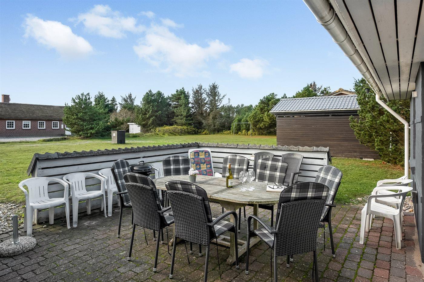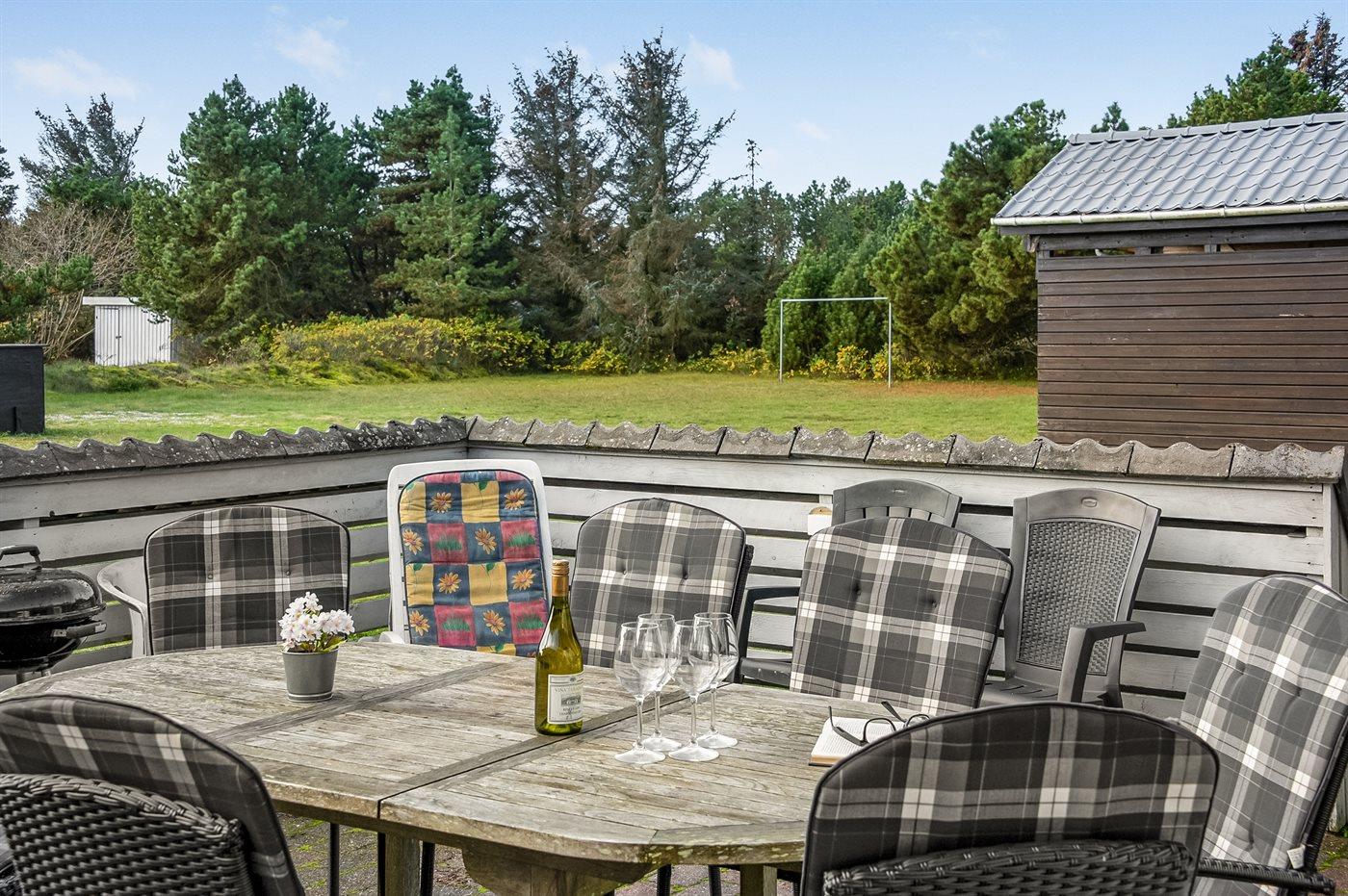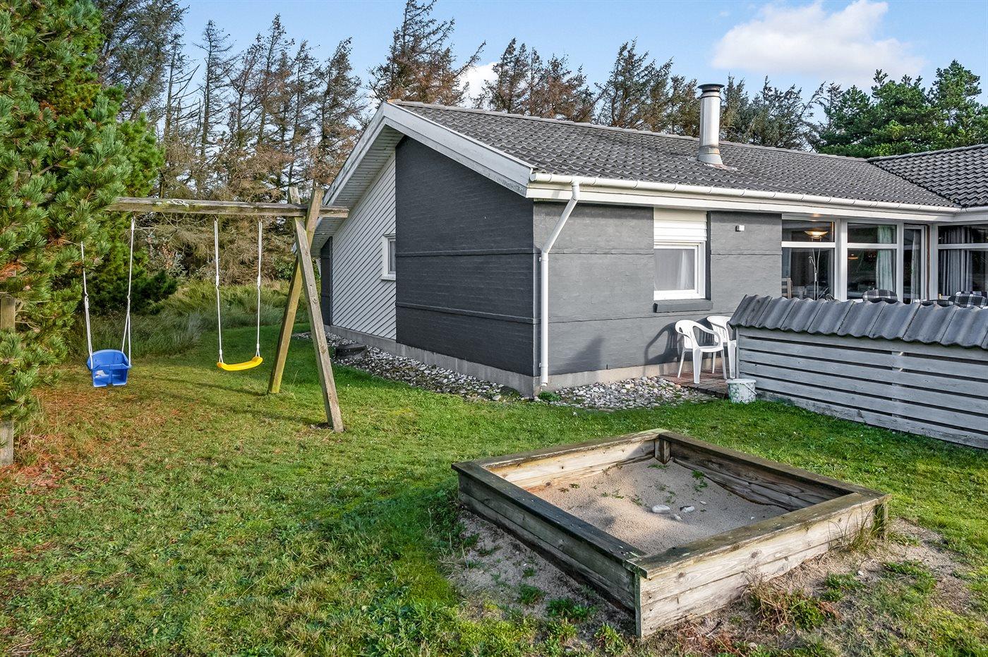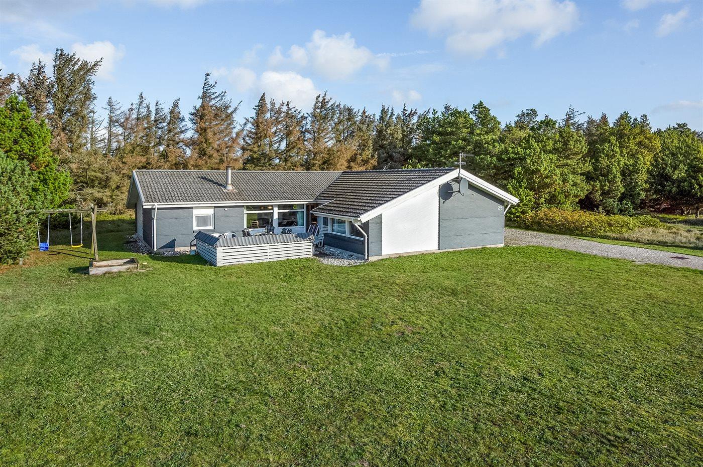 I det naturskønne ferieområde på Holmsland Klit, mellem badebyen Søndervig og fiskerbyen Hvide Sande, ligger dette rummelige sommerhus på en stor grund, som er velegnet til boldspil og leg. I området findes mange gode aktivitetsmuligheder for hele familien.