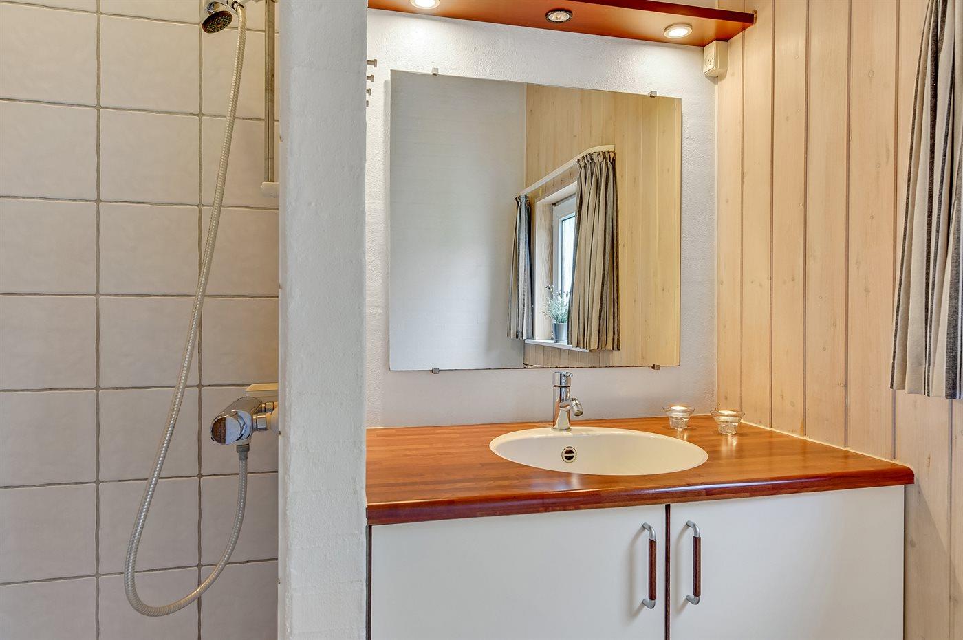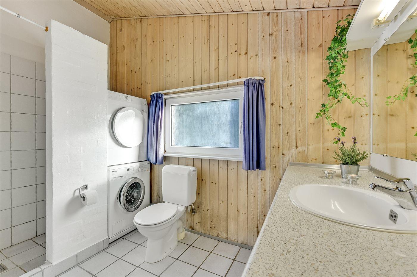 Der er 2 badeværelser med bruser og 2 toiletter. Der er gulvvarme på 1 badeværelse. I saunaen er der mulighed for afslapning.