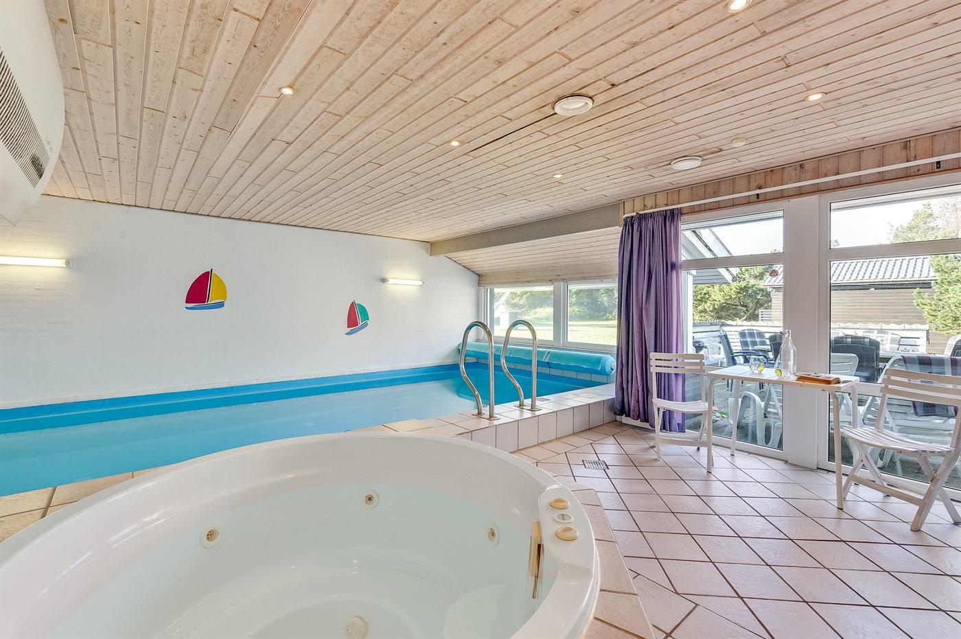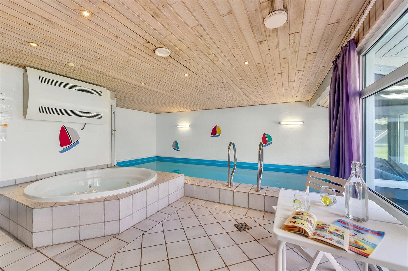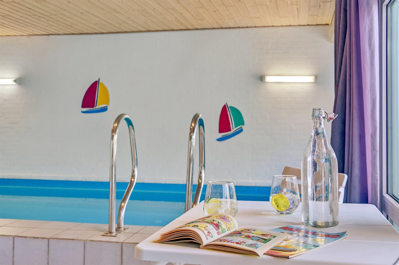 I den indendørs swimmingpool er der mulighed for leg og hyggeligt samvær. Swimmingpoolen måler op til 3 m i bredden, 7,3 m i længden og den er op til 1,3 m dyb. Vandet er mellem 24 og 28° C varmt.