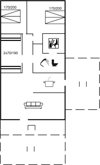 Der er i alt 3 soveværelser. Sovepladserne fordeler sig på: 4 sovepladser i dobbeltsenge. 4 sovepladser i køjesenge. Derudover er der 1 stk. barneseng.
