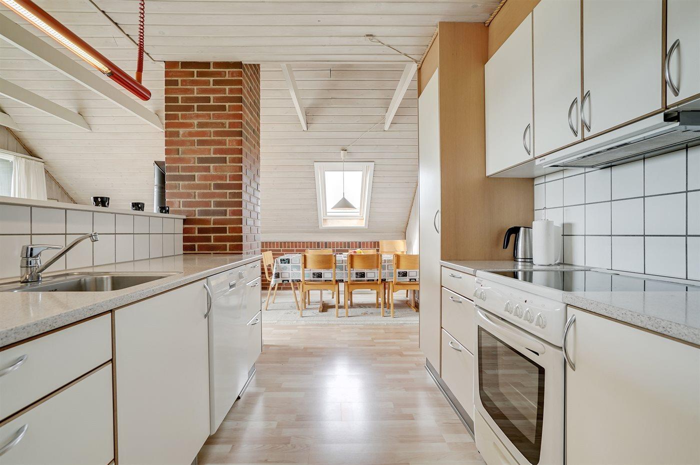 Køkkenet er udstyret med 1 køleskab. Der er 4 keramiske kogeplader, varmluftovn samt opvaskemaskine.