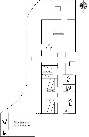 Til huset hører et separat og hyggeligt aktivitetsrum med poolbord, bordtennis, dart, bordfodbold, et af i alt to fladskærms-TV og DVD-afspillere samt et lille 'hyggehjørne' med bar. Desuden er der yderligere aktiviteter som trampolin, forskellige gynger (3 stk.), rutsjebane, klatrereb, rutsjerør, petanque og fodboldmål på grunden. Til de mindste børn er der sandkasse samt indendørs 2 høje barnestole og 1 barneseng.