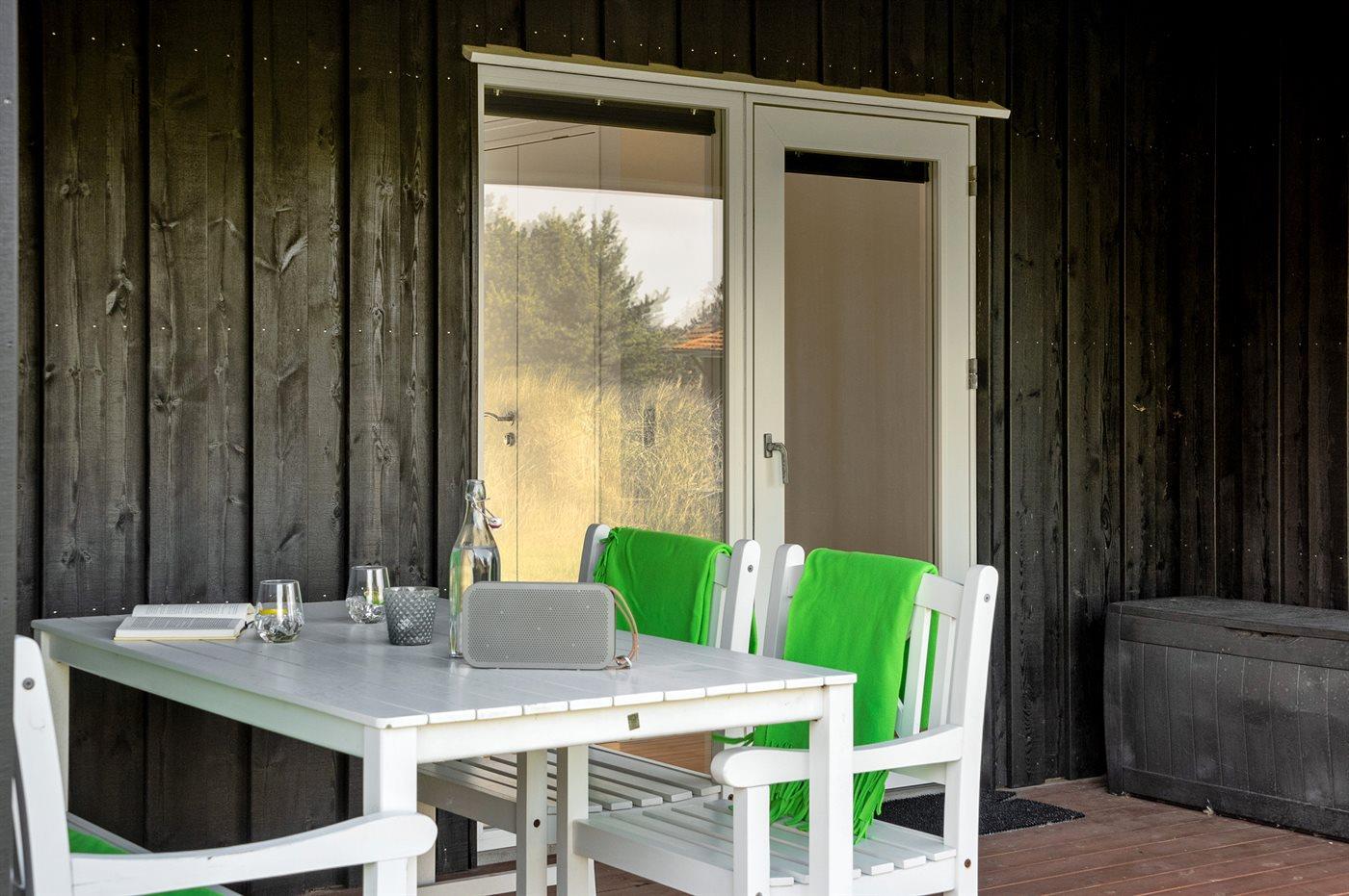 Moderne og indbydende sommerhus på 120 m2 med en god og handicapvenlig indretning, beliggende tæt på strand og by i flotte naturomgivelser. Huset er særdeles energivenligt med installation af Genvex-anlæg, energivenligt jordvarmeanlæg samt energivenligt gulvvarmeanlæg overalt i huset, således at varme og vand opvarmes via varmepumpe/jordvarme. Hertil kommer brændeovn. Huset er egnet til en gruppe på op til 8 personer plus evt. mindre børn. Huset er tyverisikret, og det er ikke tilladt at medbringe husdyr.