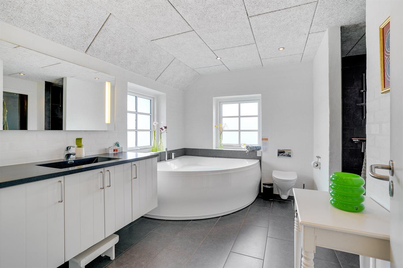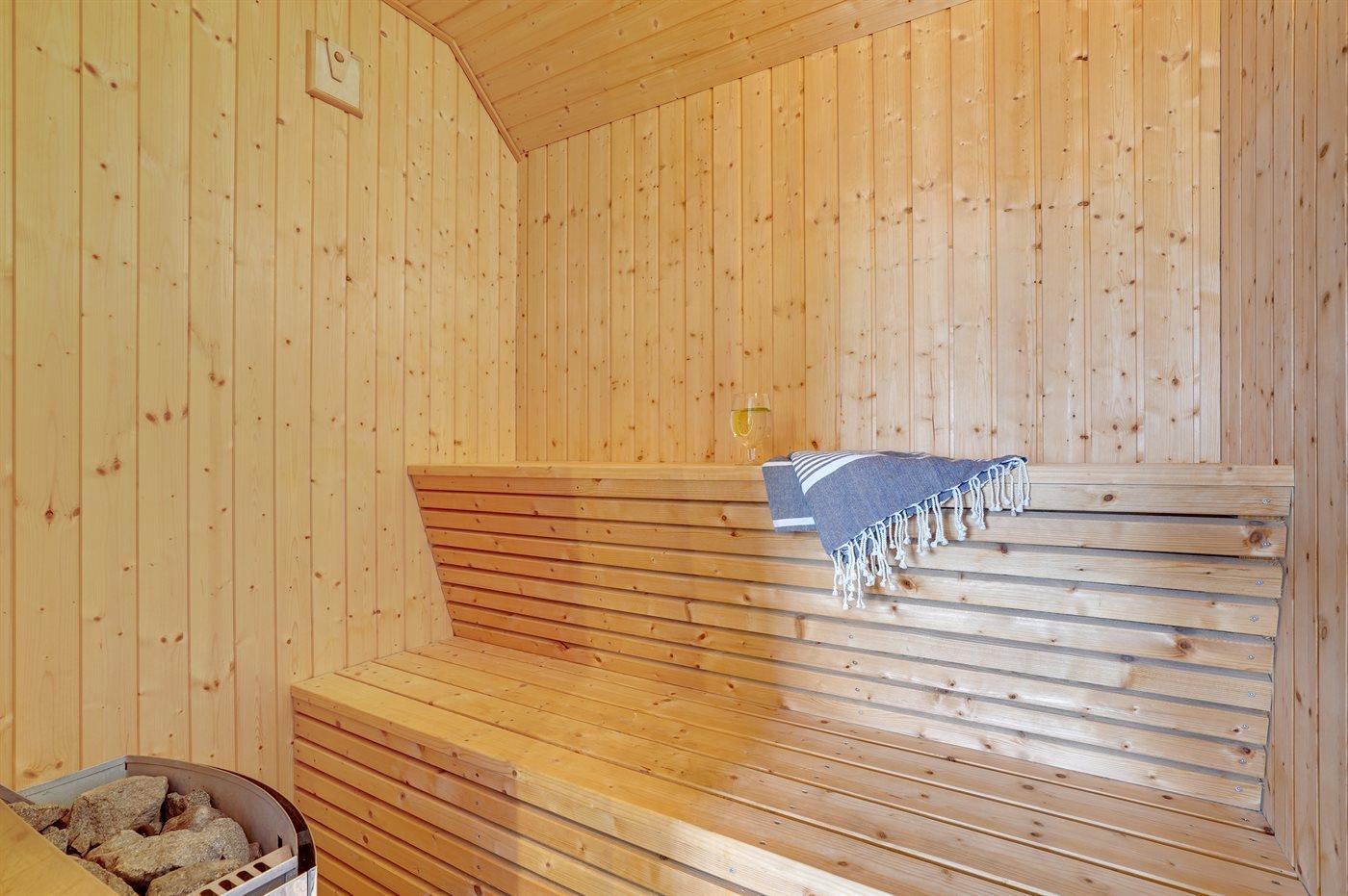 Der er 2 badeværelser med bruseniche og 2 toiletter. Der er gulvvarme på 2 badeværelser. I saunaen er der mulighed for afslapning.